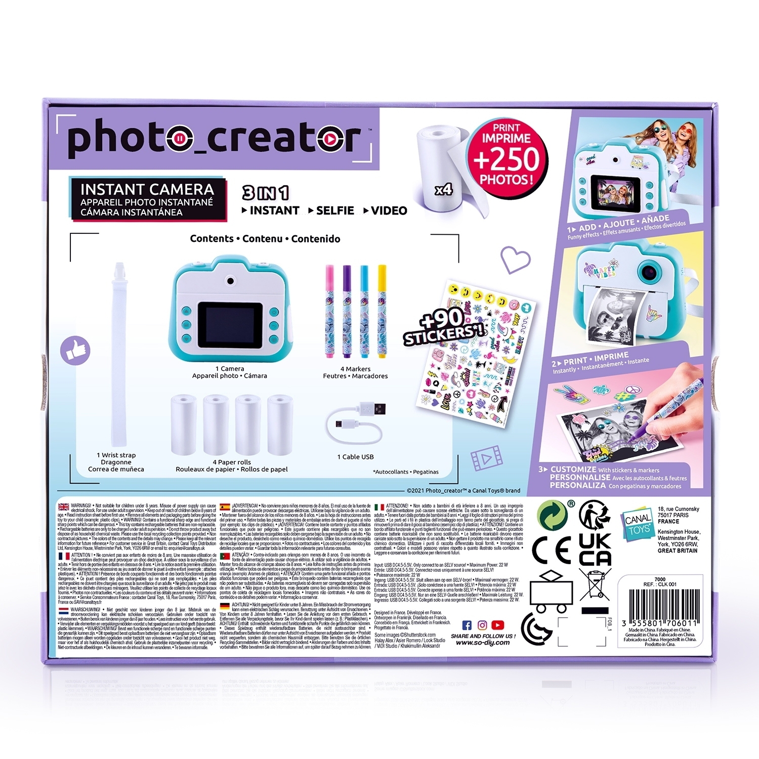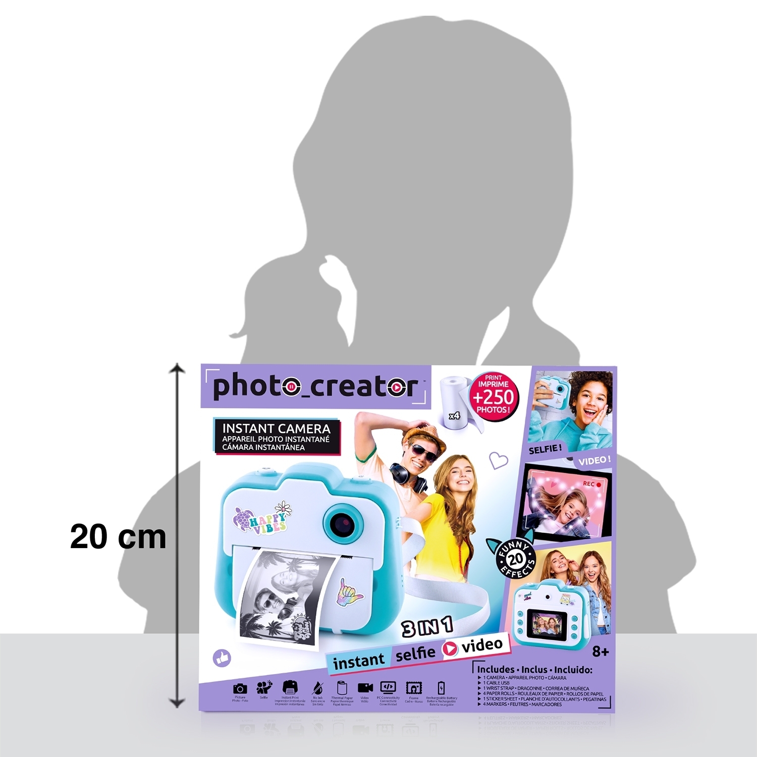 Des heures de fun et de créativité avec cet appareil photo instantané pour enfants ! Prends des photos et imprime-les instantanément, personnalise-les selon tes envies avec les feutres et les stickers inclus ! Tres simple d'utilisation, l'impression se fait par transfert thermique, sans encre !