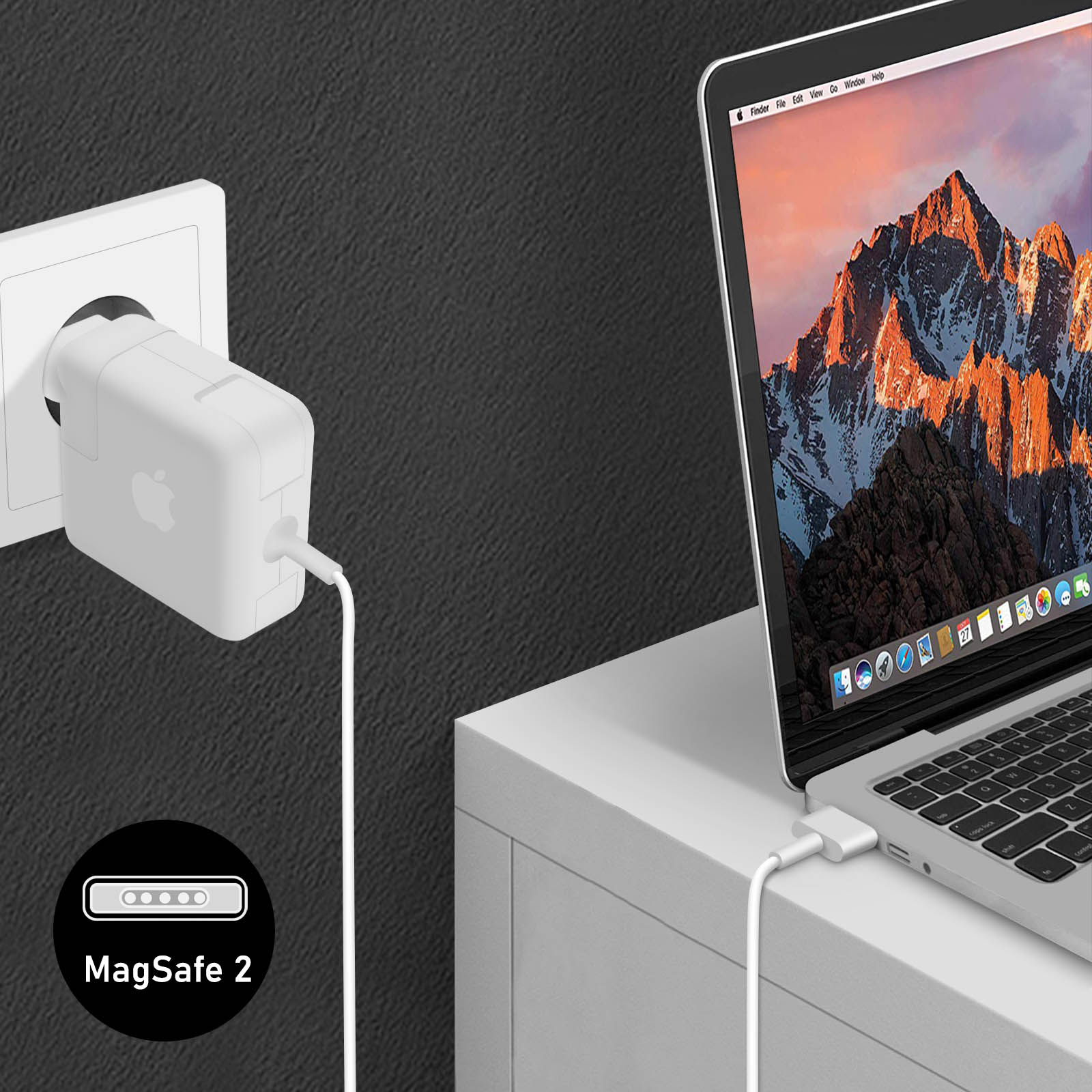 Apple 45W MagSafe 2. Utilité: Ordinateur portable, Type d'alimentation d'énergie: Intérieure, Tension d'entrée: 100-240 V. Connecteur(s): MagSafe 2. Couleur du produit: Blanc. Types de fiches d'alimentation fournies: EU