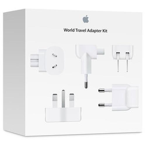 Apple Kit de voyage. Couleur du produit: Blanc, Produits compatibles: iPod, iPhone, iPad, MacBook, MacBook Pro, and MacBook Air Le Kit de voyage Apple comprend un jeu de sept fiches secteur équipées de broches adaptées à différentes prises électriques dans le monde, chacune comportant une inscription gravée au laser indiquant les pays où elle peut être utilisée. Pour ceux qui voyagent dans le monde entier, c'est le moyen de bénéficier d'une connexion dans la plupart des pays. Le kit est conçu pour fonctionner avec les iPod, iPhone et iPad, les Adaptateurs secteur MagSafe et MagSafe 2 Apple (pour MacBook, MacBook Pro et MacBook Air), les Adaptateurs secteurs USB 10 W et 12 W, et les Adaptateurs secteur pour portable. Les fiches secteur fournies dans le Kit de voyage sont utilisables directement en Amérique du Nord, au Japon, en Chine, au Royaume-Uni, en Europe continentale, en Corée, en Australie, à Hong Kong et au Brésil.