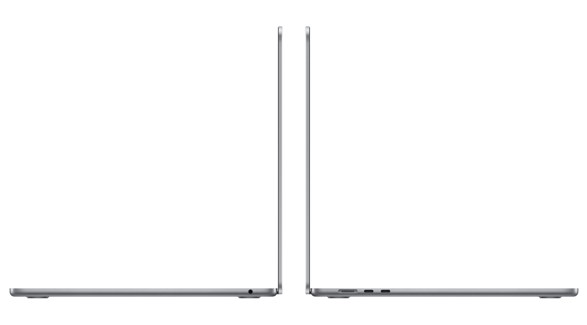 Apple MacBook Air . Type de produit: Ordinateur portable, Format: Clapet. Famille de processeur: Apple M, Modèle de processeur: M3. Taille de l'écran: 38,9 cm (15.3"), Résolution de l'écran: 2880 x 1864 pixels. Mémoire interne: 8 Go. Capacité totale de stockage: 256 Go, Supports de stockage: SSD. Modèle d'adaptateur graphique inclus: Apple GPU. Système d'exploitation installé: macOS Sonoma. Couleur du produit: Gris. Poids: 1,51 kg