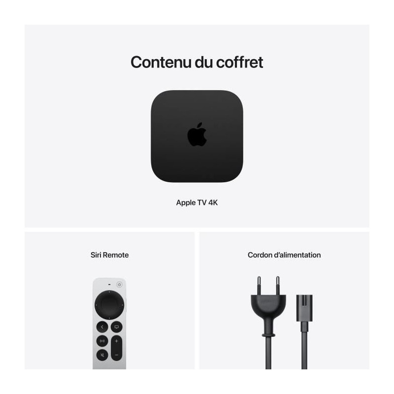 | Libellé | Apple TV 4K Noir, Argent 4K Ultra HD 128 Go Wifi Ethernet/LAN |