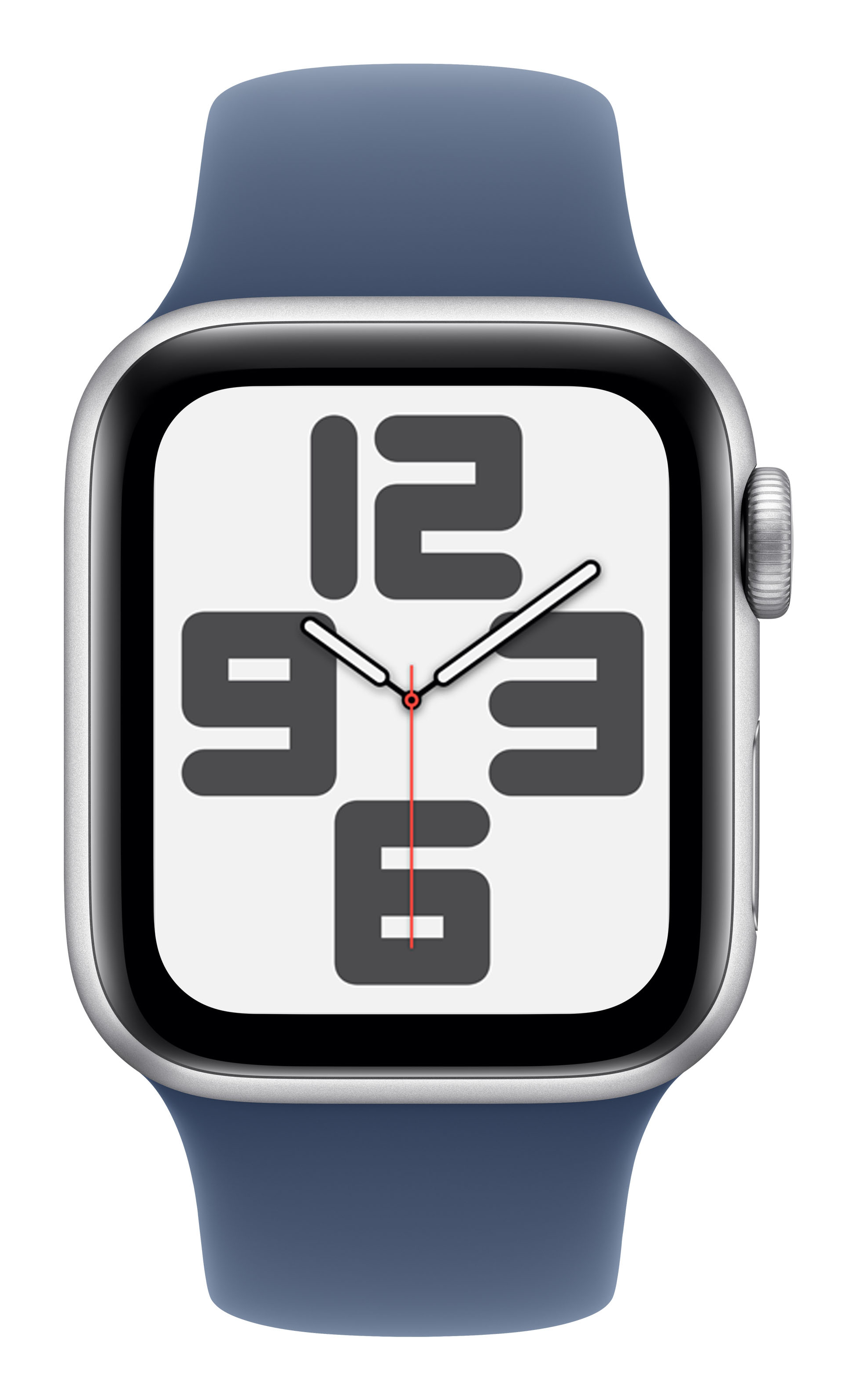 Apple Watch SE. Technologie d'affichage: OLED, Résolution de l'écran: 324 x 394 pixels, Écran tactile. Memoire flash: 32 Go. Wifi. GPS (satellite). Poids: 26,4 g. Humidité : étanche jusqu'à: 50 m, Matière de la bande: Caoutchouc, Couleur du bracelet: Bleu, Taille du bracelet: M/L. Système d'exploitation installé: watchOS 11