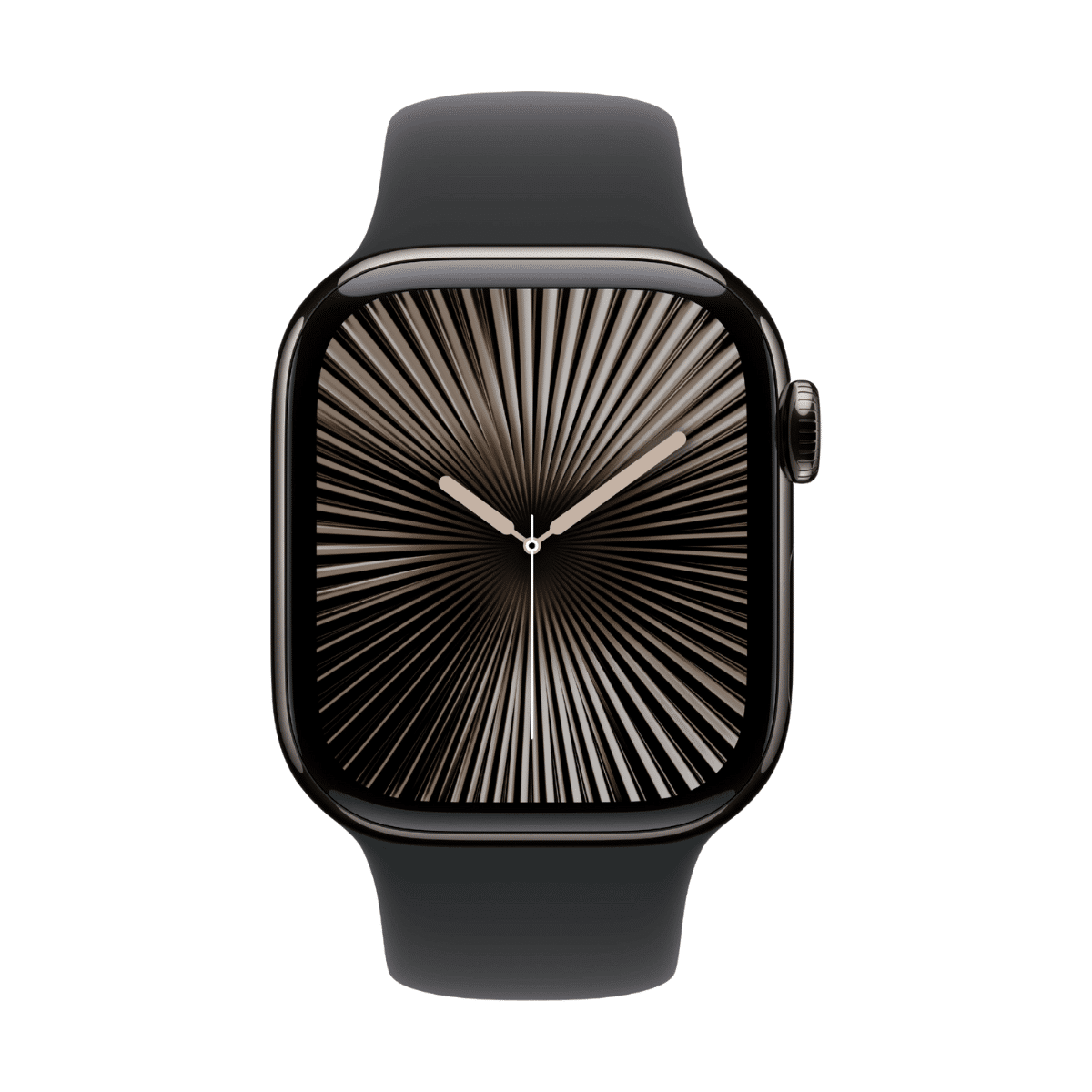 Apple Watch Series 10 GPS + Cellular 42 mm Noir titane (Slate) avec bracelet sport noir - Taille S/M