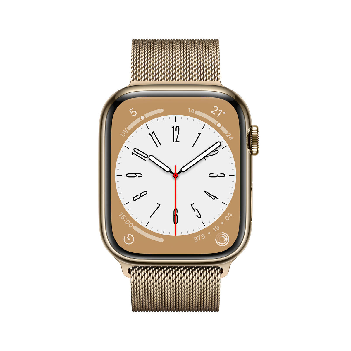 Apple Watch Series 8. Technologie d'affichage: OLED, Résolution de l'écran: 396 x 484 pixels, Écran tactile. Memoire flash: 32 Go. Wifi. GPS (satellite). Poids: 51,5 g. Humidité : étanche jusqu'à: 50 m, Couleur du bracelet: Or. Système d'exploitation installé: watchOS 9 Votre meilleure partenaire a encore gagné en performances. Avec un capteur de température pour une vue d'ensemble plus complète de la santé des femmes1. Détection des accidents pour appeler les secours en cas d'urgence2. Phases du sommeil pour mieux suivre vos nuits. Et encore plus de façons de vous entraîner avec l'app Exercice améliorée. L'avenir de la santé n'a jamais été aussi prometteur.