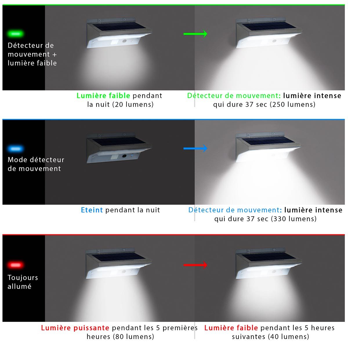 Le projecteur LED solaire Derby fonctionne grâce à son panneau solaire qui collecte l'énergie la journée pour alimenter 21 LEDs extra puissantes dès la tombée de la nuit. Ce luminaire d'extérieur diffuse un éclairage blanc froid intense de 250 lumens via son détecteur crépusculaire. Sa batterie lithium de 2200 mAh offre une autonomie technique de 8 à 12 heures après une charge complète de 6 à 8 heures. Équipé d'un détecteur de mouvement, il dispose de 3 modes d'intensité variable pour s'adapter à vos besoins de sécurité. Fabriqué en PVC et acier avec une certification IP44, il résiste aux rayons UV et aux températures extrêmes pour un usage permanent au jardin ou devant un garage. Ses LEDs basse consommation assurent une longévité technique de 50 000 heures. Son câble souple facilite le positionnement autour d'une rambarde, d'un parasol ou le long d'un mur, et l'éclairage reste agréable sans éblouir.