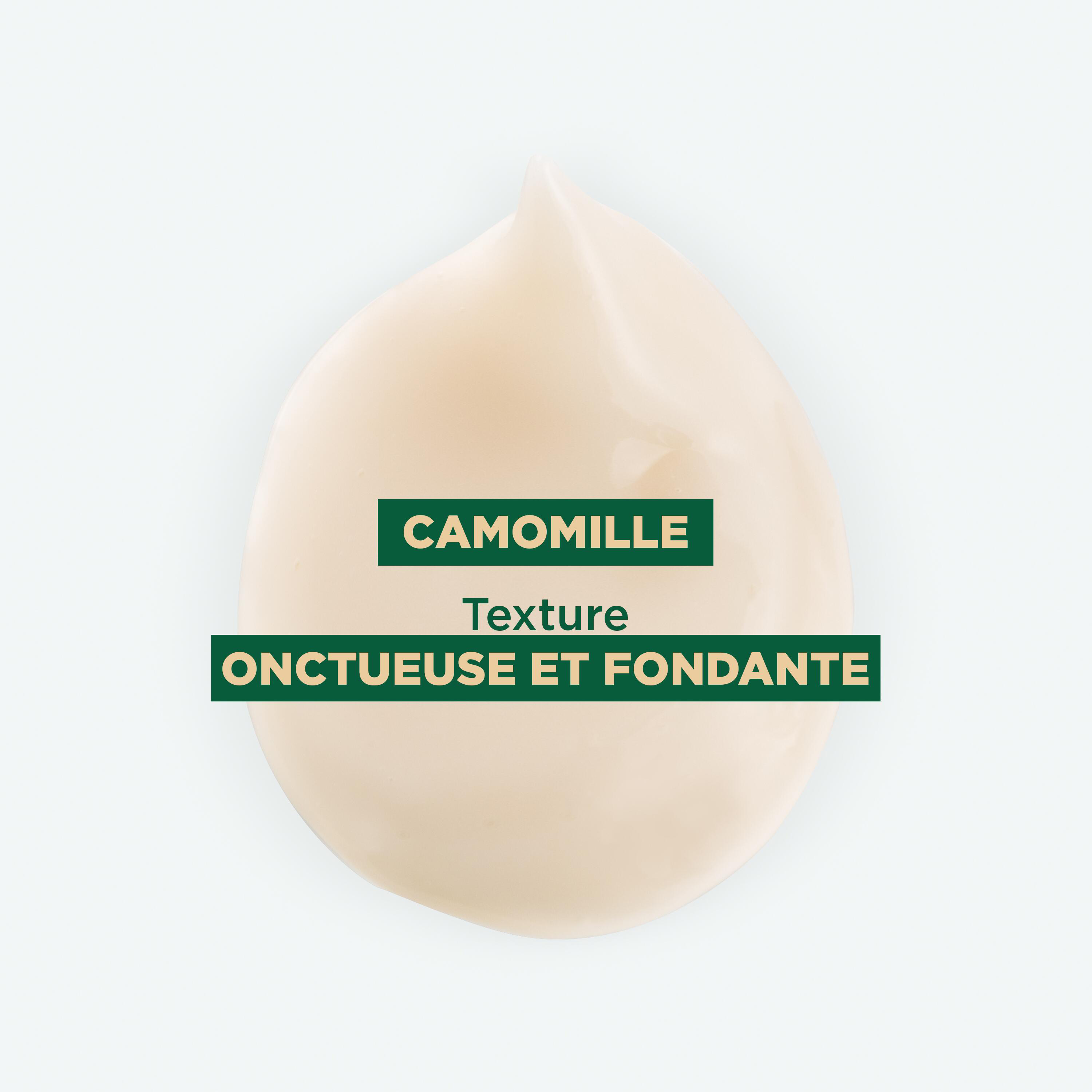 Klorane a formulé l’Après-shampoing à la Camomille pour prendre soin des cheveux blonds naturels, colorés ou méchés de toute la famille, dès 3 ans. Utilisé en complément du Shampoing à la Camomille, ce soin hydrate et démêle les cheveux blonds en leur apportant éclat, brillance et reflets blonds. Sa formule naturelle* et sensorielle est enrichie en Camomille, actif végétal au pouvoir éclaircissant qui pare les blonds de jolis reflets dorés naturels. Grâce à sa texture onctueuse et fondante, l’Après-shampoing hydrate et facilite le démêlage des cheveux dans un doux parfum d’enfance. *96% d’ingrédients d’origine naturelle.