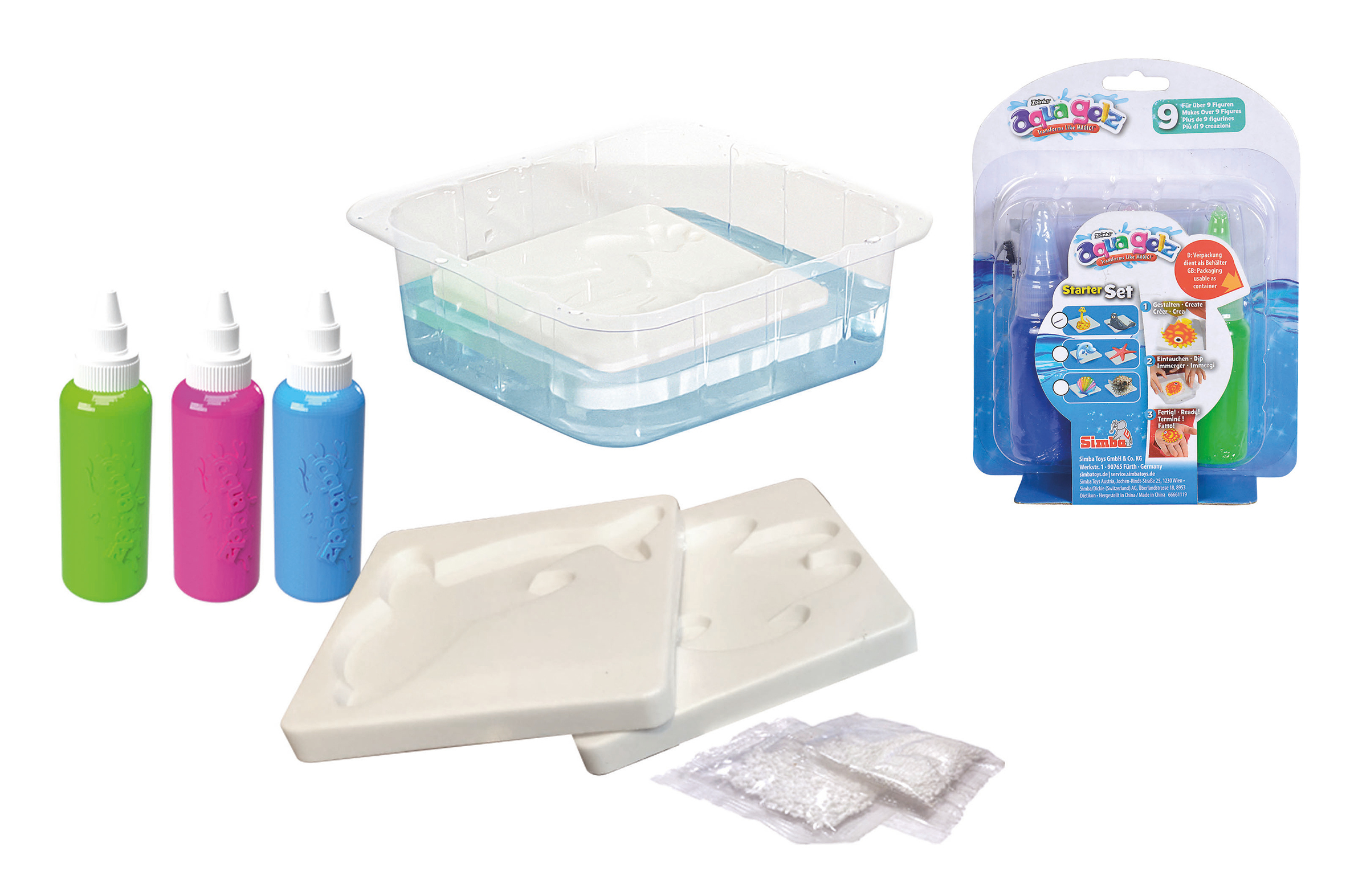 Kit permettant de créer des figurines en 3D. Inclus : 3 gels de couleurs basiques 30ml (vert, rose, bleu), 1 récipient, 2 moules et 2 sachets d'additifs pour l'eau.