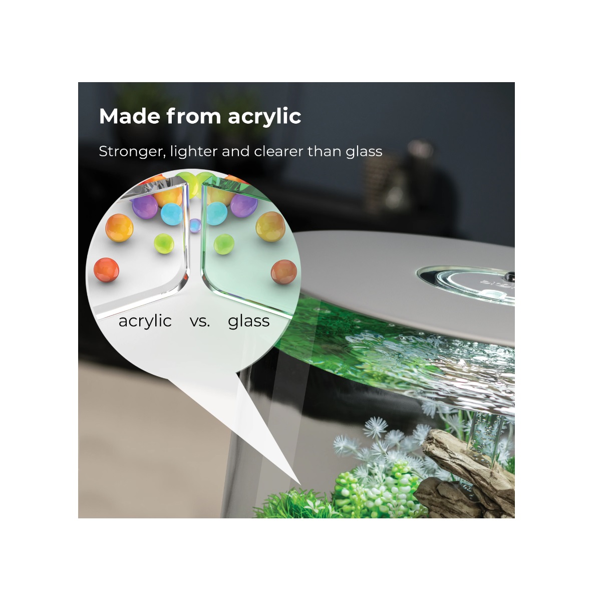 Tube 15 LED black - aquarium rond 15l led noir - Le Jardin d'intérieur biOrb Tube 15 LED black de Oase ajoutent un sentiment de joie et d'émerveillement à votre maison. Cet aquarium en acrylique TUBE de 4 gallons est conçu avec un contour cylindrique et une vue à 360 degrés afin que vous puissiez admirer tous les aspects de votre biOrb. La base de la plateforme crée une finition élégante à cet aquarium unique. Installation rapide et facile, comprend tout ce dont vous avez besoin pour démarrer votre passe-temps. Après l'installation rapide de l'aquarium, ajoutez le décor biOrb de votre choix. Aquarium en acrylique, l'acrylique est 10 fois plus résistant et 23 % plus transparent que le verre. L'acrylique est également un bon isolant, vous ne perdez donc pas autant de chaleur qu'avec un aquarium en verre. Éclairage LED longue durée, équipé d'un éclairage multicolore télécommandé. La lumière MCR changera votre façon de vivre biOrb. Choisissez parmi 16 couleurs prédéfinies et contrôlez la luminosité de la lumière. Vous pouvez même définir un cycle d’éclairage automatique jour et nuit. Il existe un cadre adapté à chaque humeur et qui ajoute à votre sentiment de bien-être. Filtration en 5 étapes, garantit une eau claire et saine avec une filtration biologique, mécanique et chimique, une stabilisation et une oxygénation de l'eau. Cartouche filtrante, installée au fond de l’aquarium, car c’est là que vont la plupart des déchets de poissons. Facile à remplacer lorsqu'il est temps d'effectuer un entretien de routine. Média céramique , entoure la cartouche filtrante au fond de l'aquarium. Au fil du temps, leur structure en nid d'abeille se peuple de bonnes bactéries qui neutralisent l'ammoniac et les nitrates des poissons. Basse tension, tous les aquariums biOrb fonctionnent à partir d'un transformateur universel 12 V. Pompe à air silencieuse, la pompe est conçue pour un fonctionnement silencieux et une stabilité. Accès facile à l'alimentation, trou d'alimentation idéalement situé en haut de l'aquarium. Entretien facile , en fonction de votre choix d'espèces de poissons, vous n'aurez peut-être besoin que d'environ 15 minutes d'entretien par mois avec notre kit de service biOrb (vendu séparément).