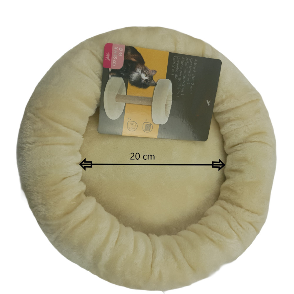 Arbre à chat 2 en 1, ø 35 cm x hauteur 45 cm, couleur beige, pour chats et chatons.