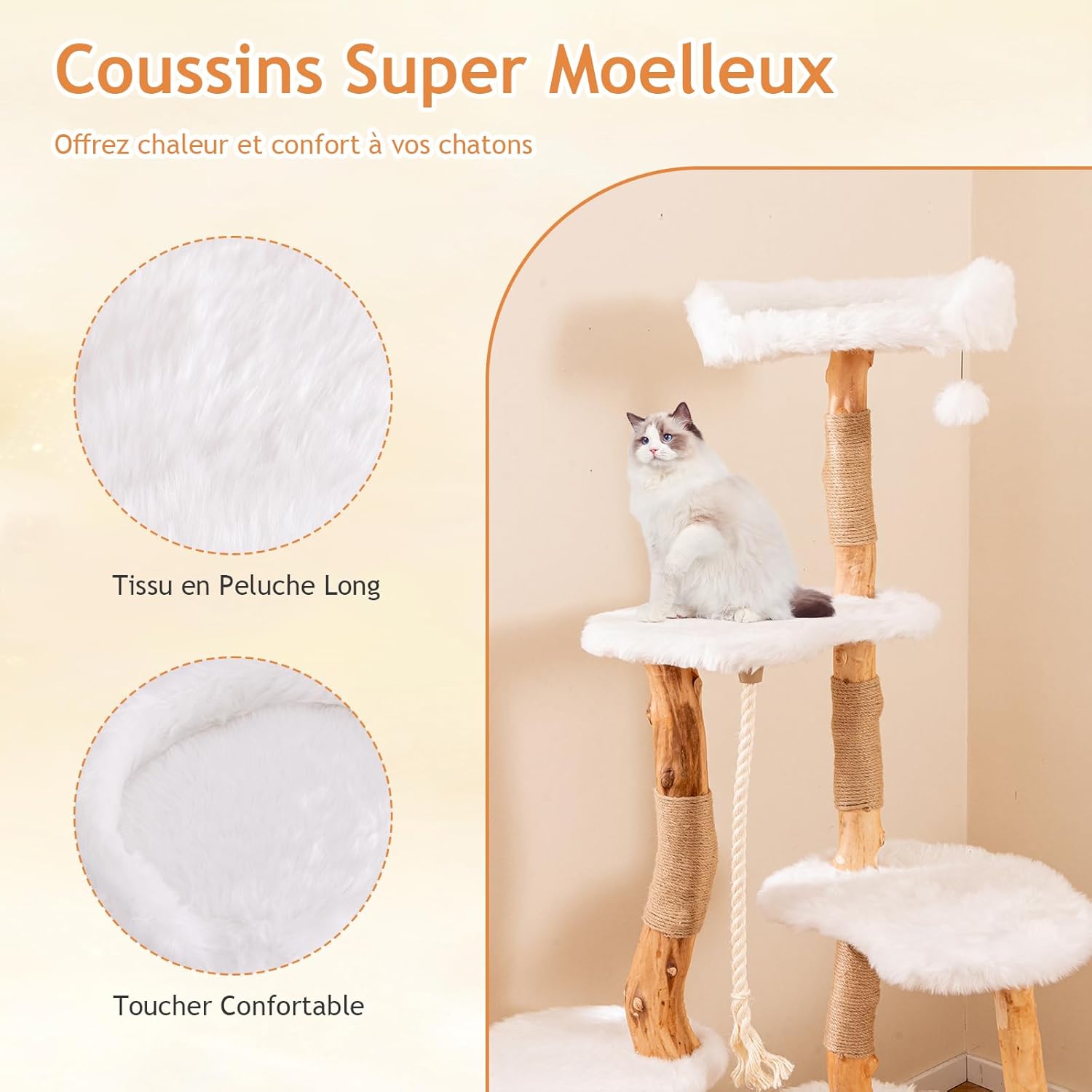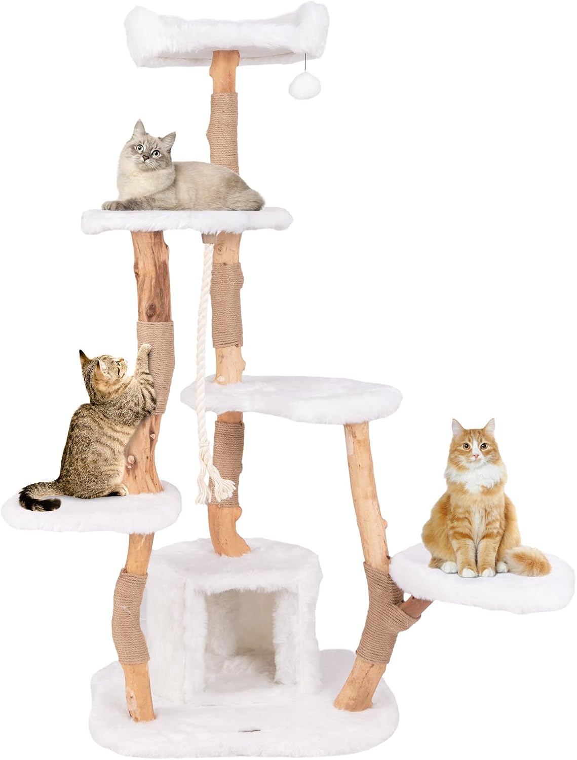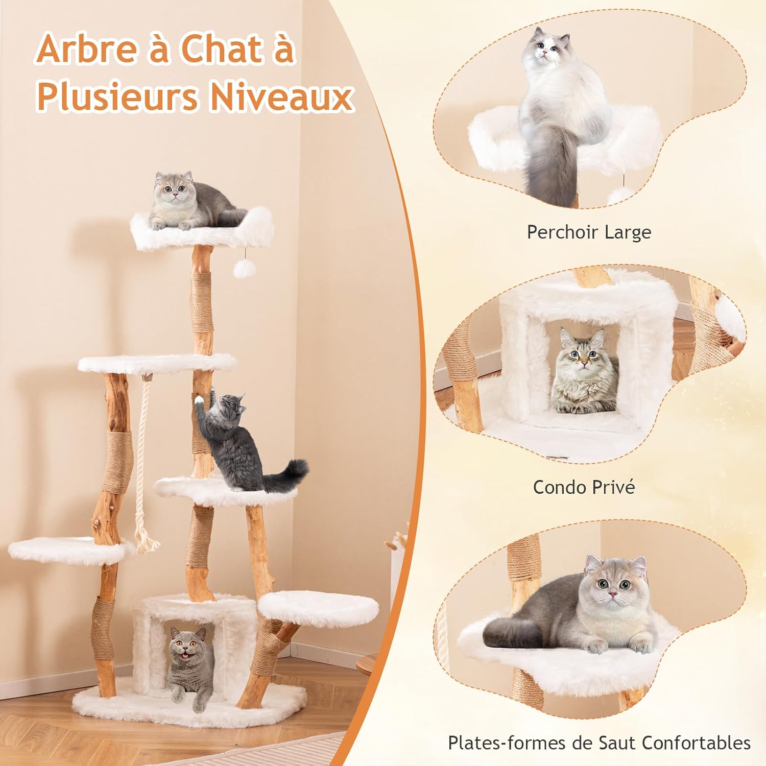 - Cadre robuste en bois massif pour une sécurité optimale : Fabriqué avec des troncs de poirier solides, cet arbre à chat offre un support stable et une excellente capacité de charge, adapté aussi bien aux chatons qu'aux chats adultes. Il garantit une utilisation en toute tranquillité pour vous et votre chat.