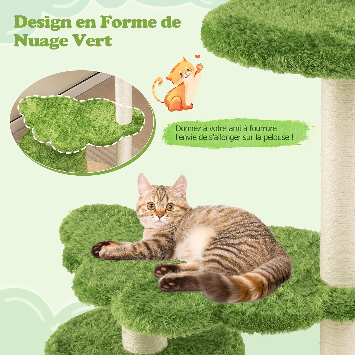 | Libellé | Arbre à chat avec condo, perche, plateforme, griffoir en sisal, tour d'activité de chat à 3 niveaux vert |
