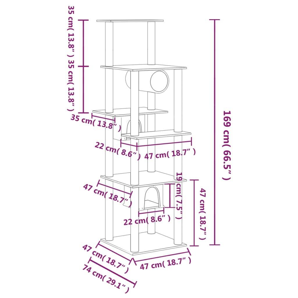 | Libellé | Arbre à chat avec griffoirs en sisal gris clair 169 cm |