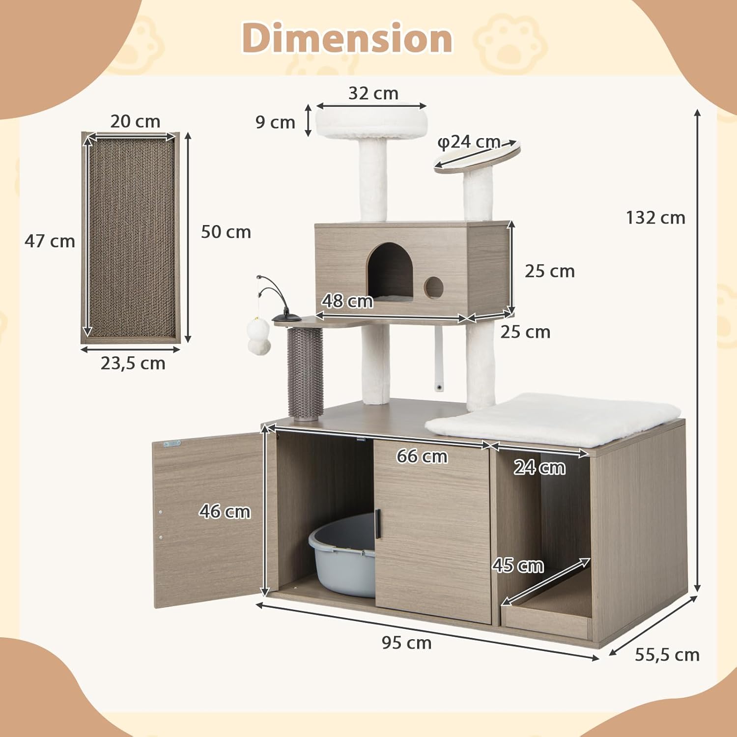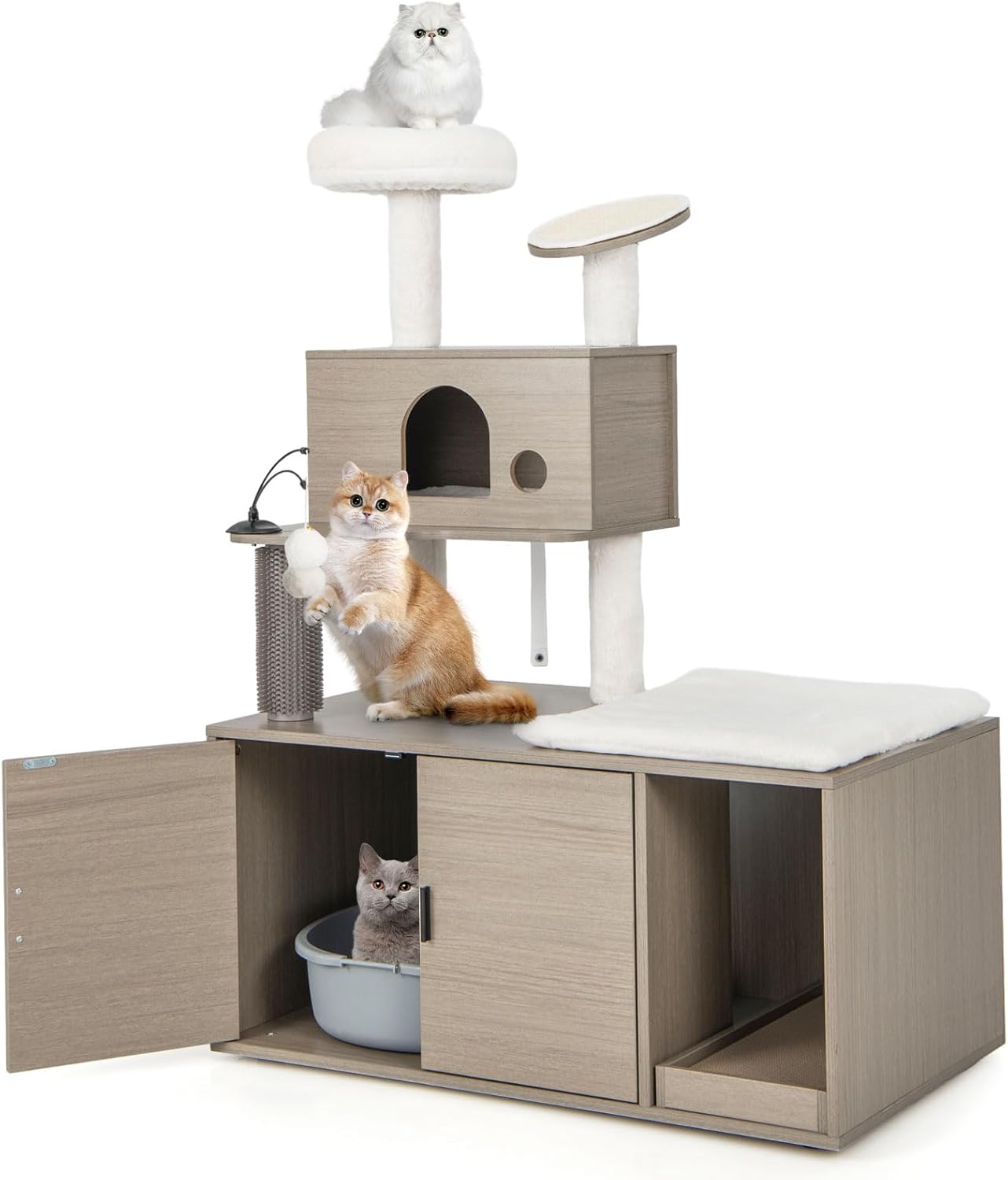 | Libellé | Arbre à chat avec meuble litière pour chat, 1 condo,griffoirs, gratter en sisal, balles suspendues,gris |