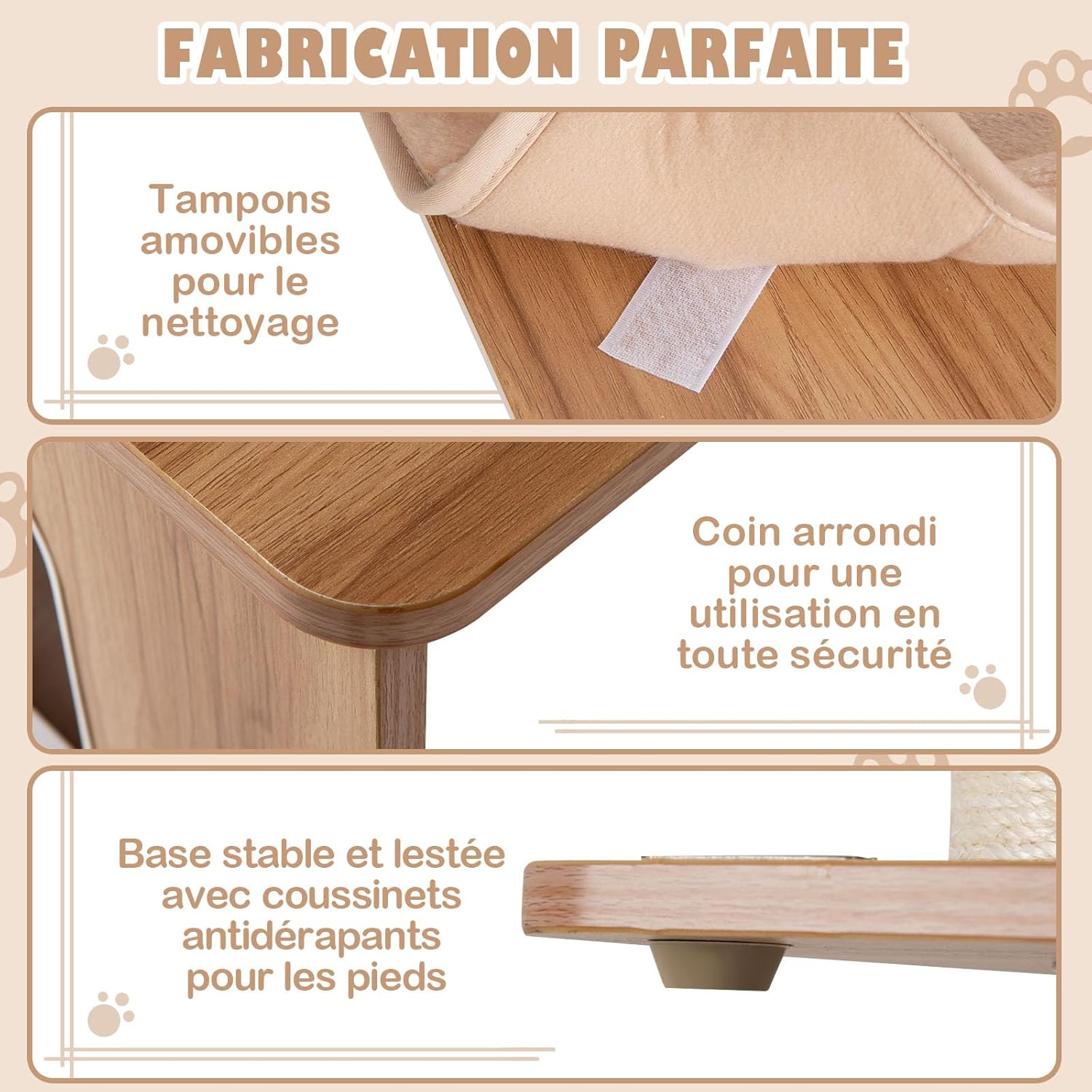 - Design Moderne: La finition en grain de bois et le style moderne confèrent à cette arbre à chat un attrait unique.