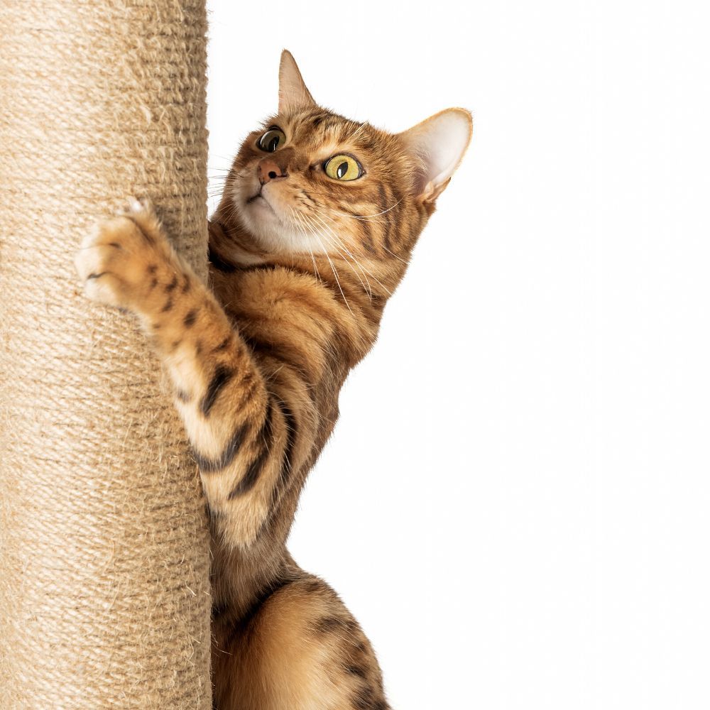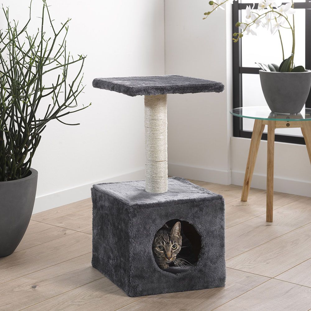 Cet arbre à chat, de la marque Love Story, comporte l'essentiel pour divertir votre chat et lui assurer un territoire bien à lui. Il se compose d'une niche confortable, de 2 perchoirs, de 2 griffoirs et d'un jouet suspendu élastique. Cet arbre à chat multi activités occupe peu de place avec ses dimensions 27 x 35 x 60 cm. Il est parfait pour les petits espaces et se monte facilement. Les coloris neutres, beige et gris ou sable, s'intègrent aisément dans tout type de décoration. Le tissu en peluche douce offre un confort appréciable.