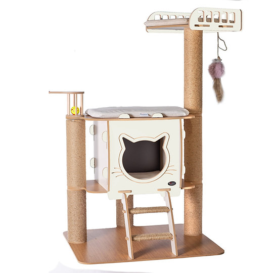 | Plus produit | Convient pour tout type de chat répond au besoin de la naissance à la vieillesse fonctionnalité, durabilité et confort. 8 mm en mdf mélaminé qui résiste bien aux griffes |