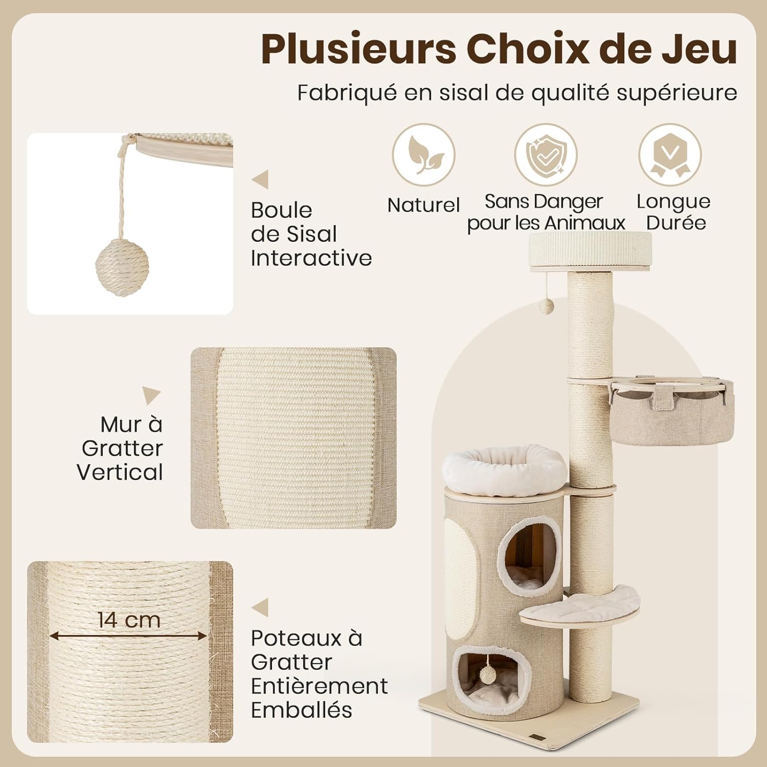 Fabriqué en sisal supérieur, naturel, sûr pour les animaux et durable