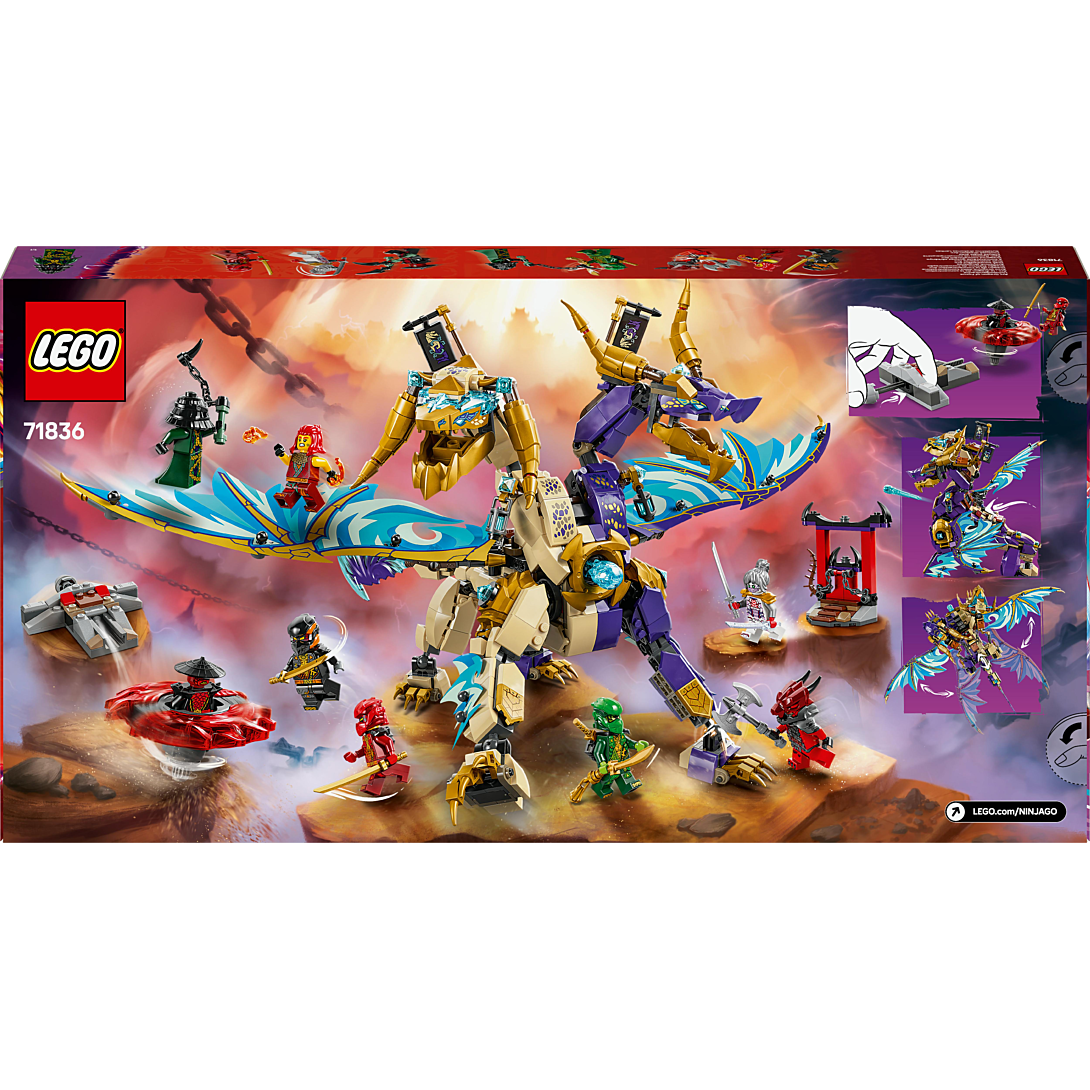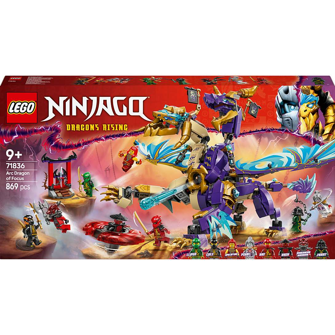 | Plus produit | Rejouez la saison 3 de NINJAGO® Le soulèvement des dragons avec le dragon Arche de la concentration LEGO® NINJAGO® accompagné de 8 minifigurines. |