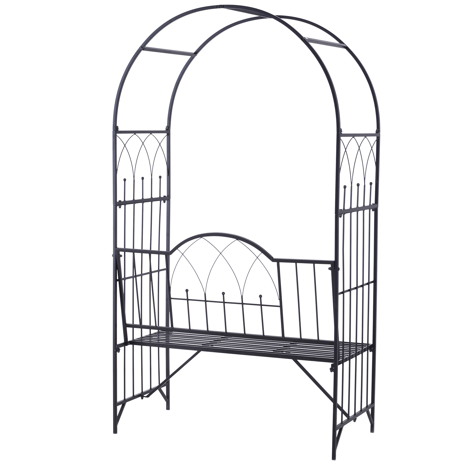 Arche à rosiers banc de jardin 2 places 2 en 1 dim. 115L x 59l x 203H cm métal époxy noir