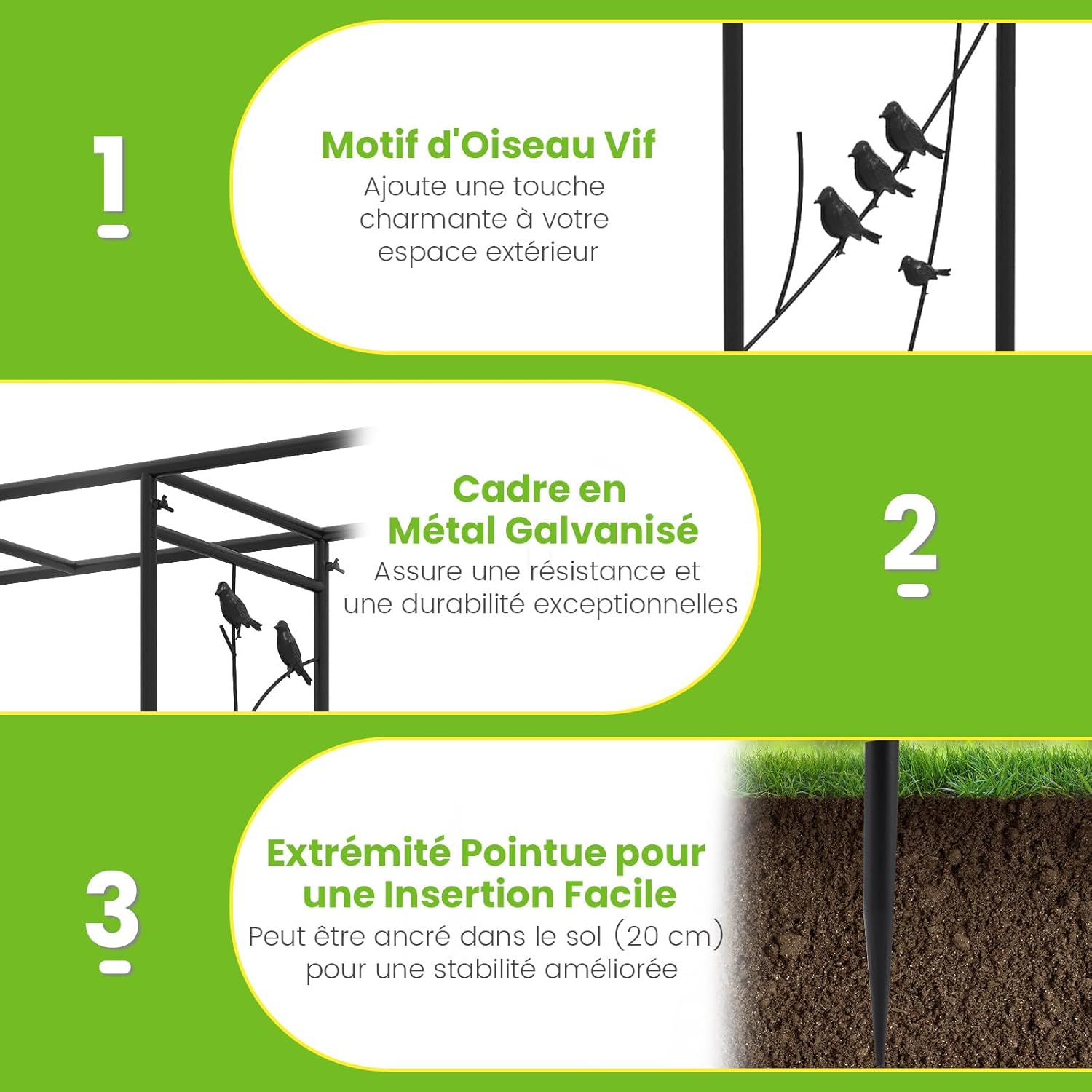 - Décoration élégante pour multiples ambiances:Conçue avec un motif d'oiseau réaliste, cette grande arche de jardin ajoute un élément sophistiqué et dynamique à tout espace. Sa polyvalence la rend parfaite pour divers environnements comme un jardin calme, un parc animé ou des événements cérémoniels.