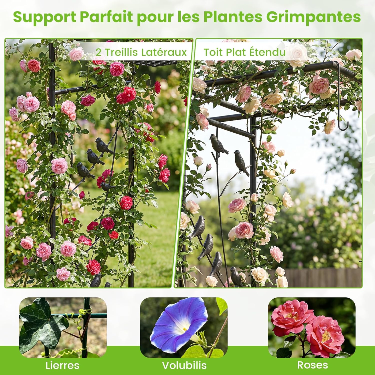 - Havre pour plantes grimpantes:Les 2 treillis latéraux de l'arche de jardin offrent un support sain pour les plantes grimpantes, allant du jasmin au lierre. En fournissant un soutien robuste et une exposition optimale au soleil, le treillis assure que vos plantes grimpantes ne se contentent pas de survivre mais s'épanouissent.