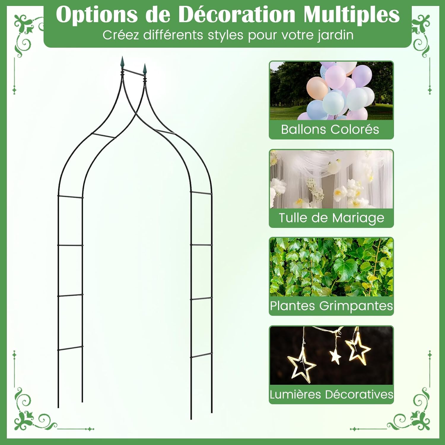 | Libellé | Arche de Jardin Métal pour Plantes Grimpantes, Arceau à Rosiers Treillis Gothique, Décoration pour Fête |
