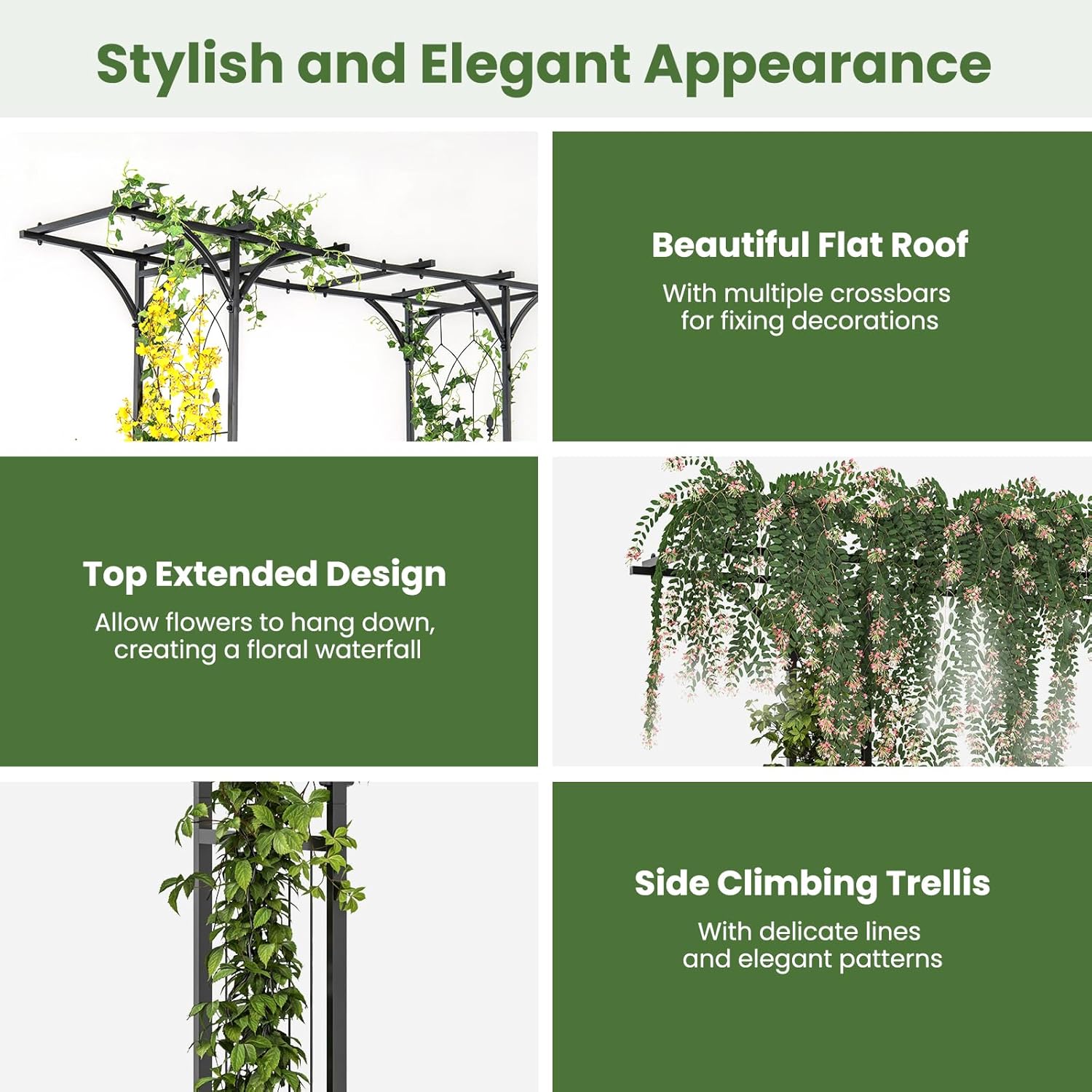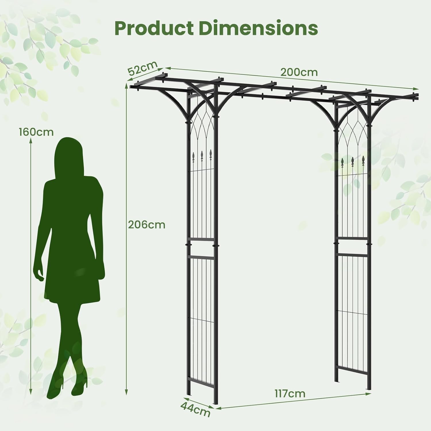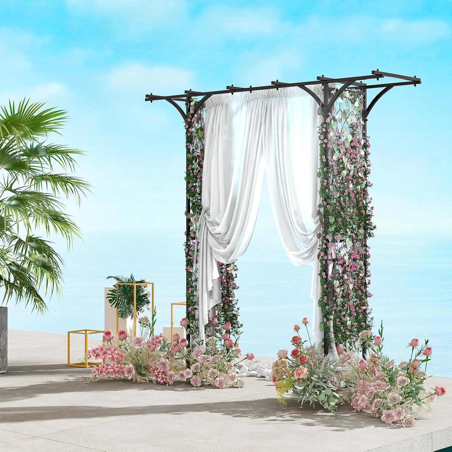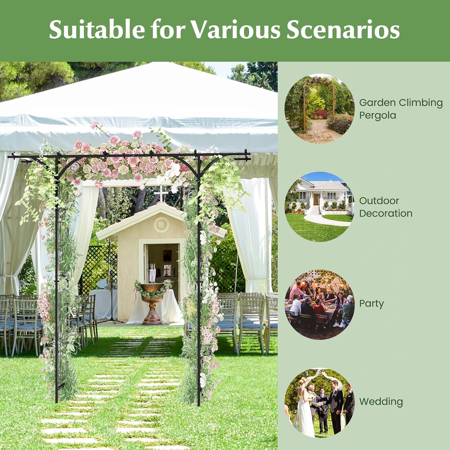 - Pergola Décorative pour Tous les Usages : Que ce soit en guise d'entrée de jardin, de support pour plantes grimpantes, d'arche de mariage ou de fond pour événements spéciaux, cette pergola polyvalente s'adapte à tous vos besoins. Le design d' arche s'intègre parfaitement dans divers environnements extérieurs.