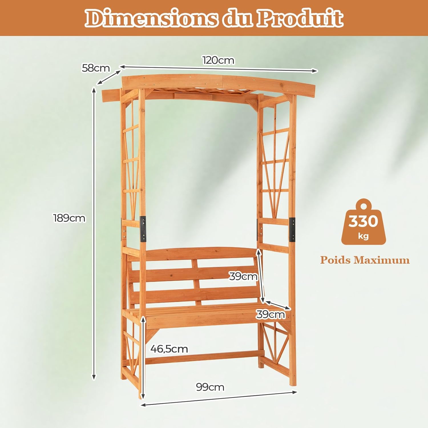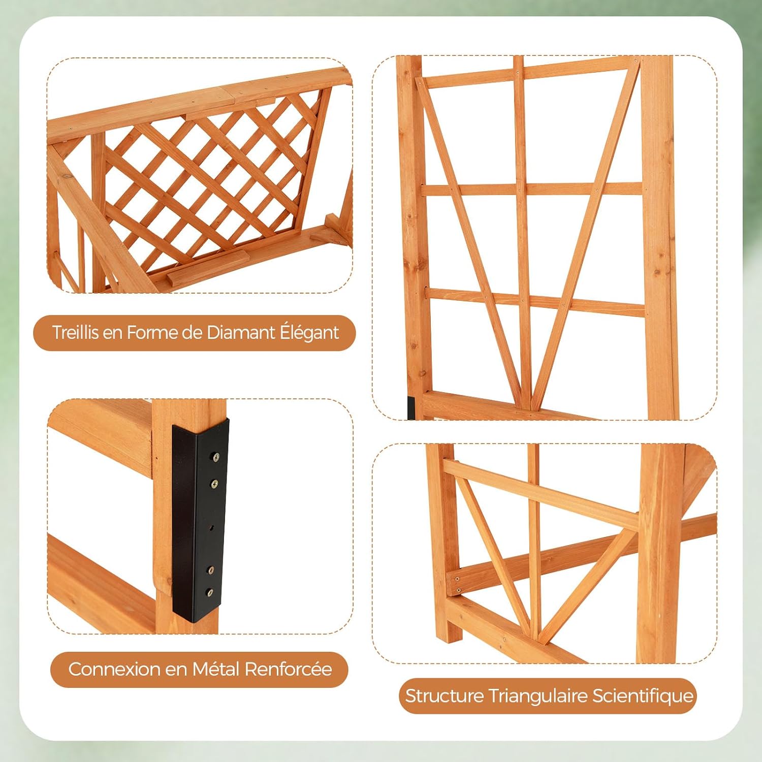 | Libellé | Arche jardin avec banc exterieur, banc et 2 treillis pour plantes grimpantes, vignes |