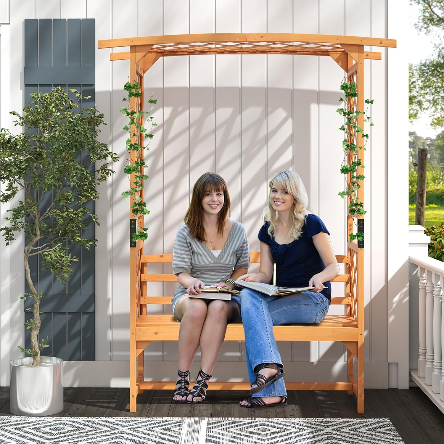 Arche jardin avec banc exterieur, banc et 2 treillis pour plantes grimpantes, vignes