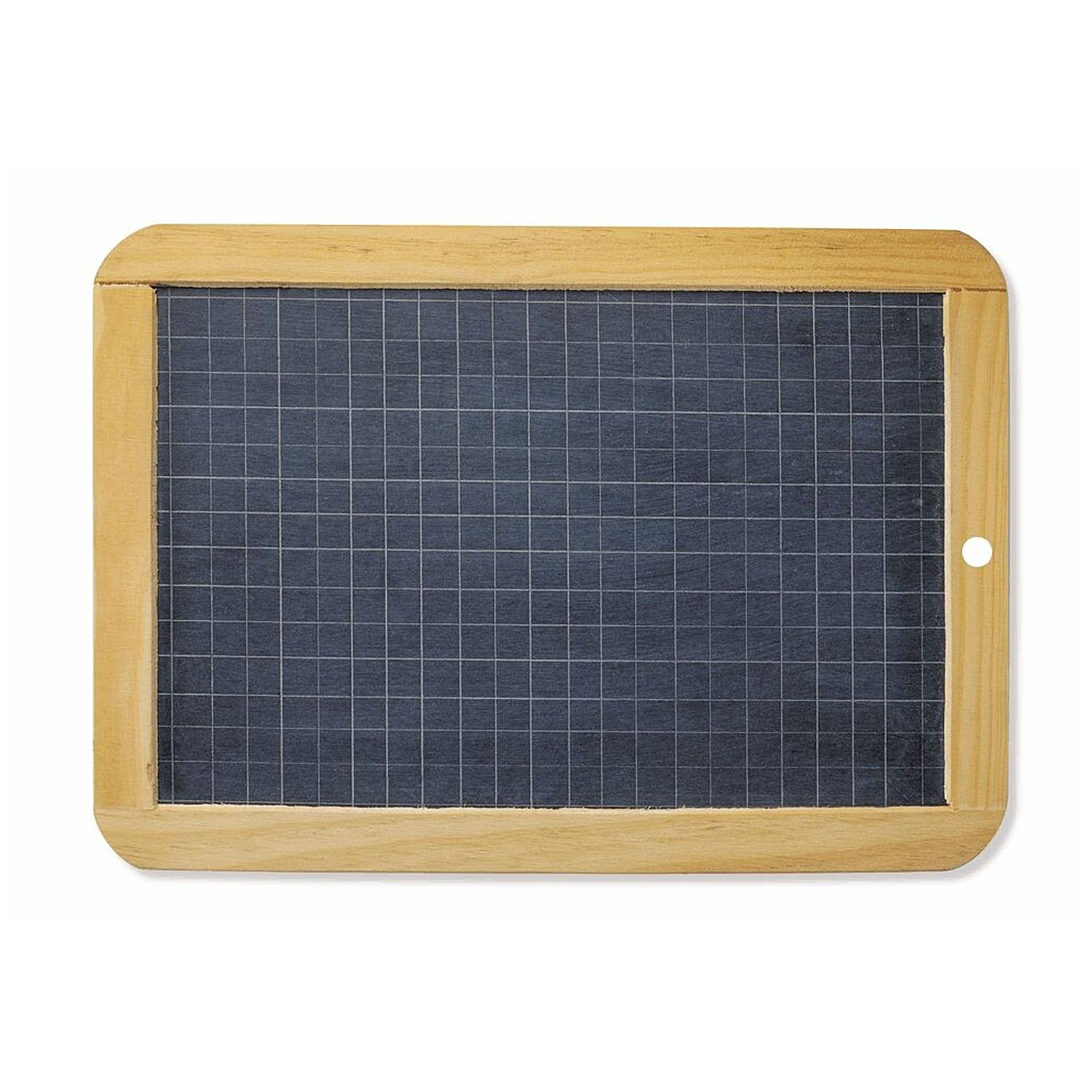 Ardoise en pierre avec contour en bois, très résistante : longue durée de vie. Double face : une face unie pour le dessin, une face quadrillée pour l écriture.