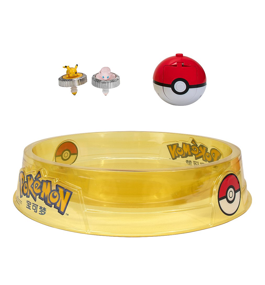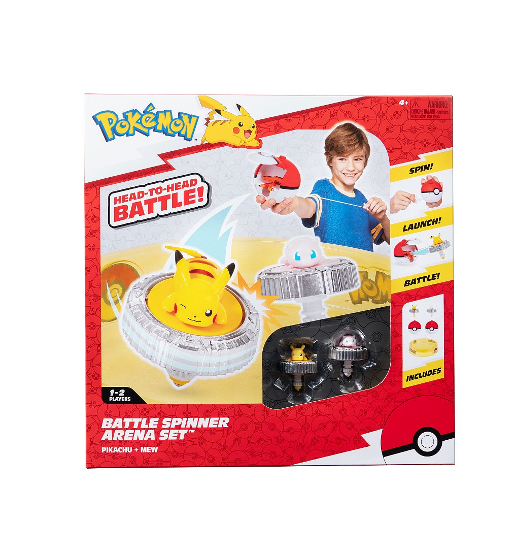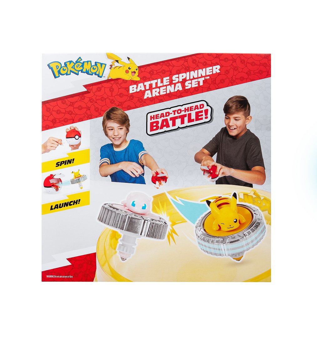 Combats au coude à coude avec le coffret Arène pour combat de toupies Pokémon ! Il comprend une arène de combat, deux toupies de combat représentant Pikachu et Mew, et deux lanceurs Poké Ball. Charge les toupies, tire le cordon enroulé et appuie sur le bouton pour les lancer dans l'action !