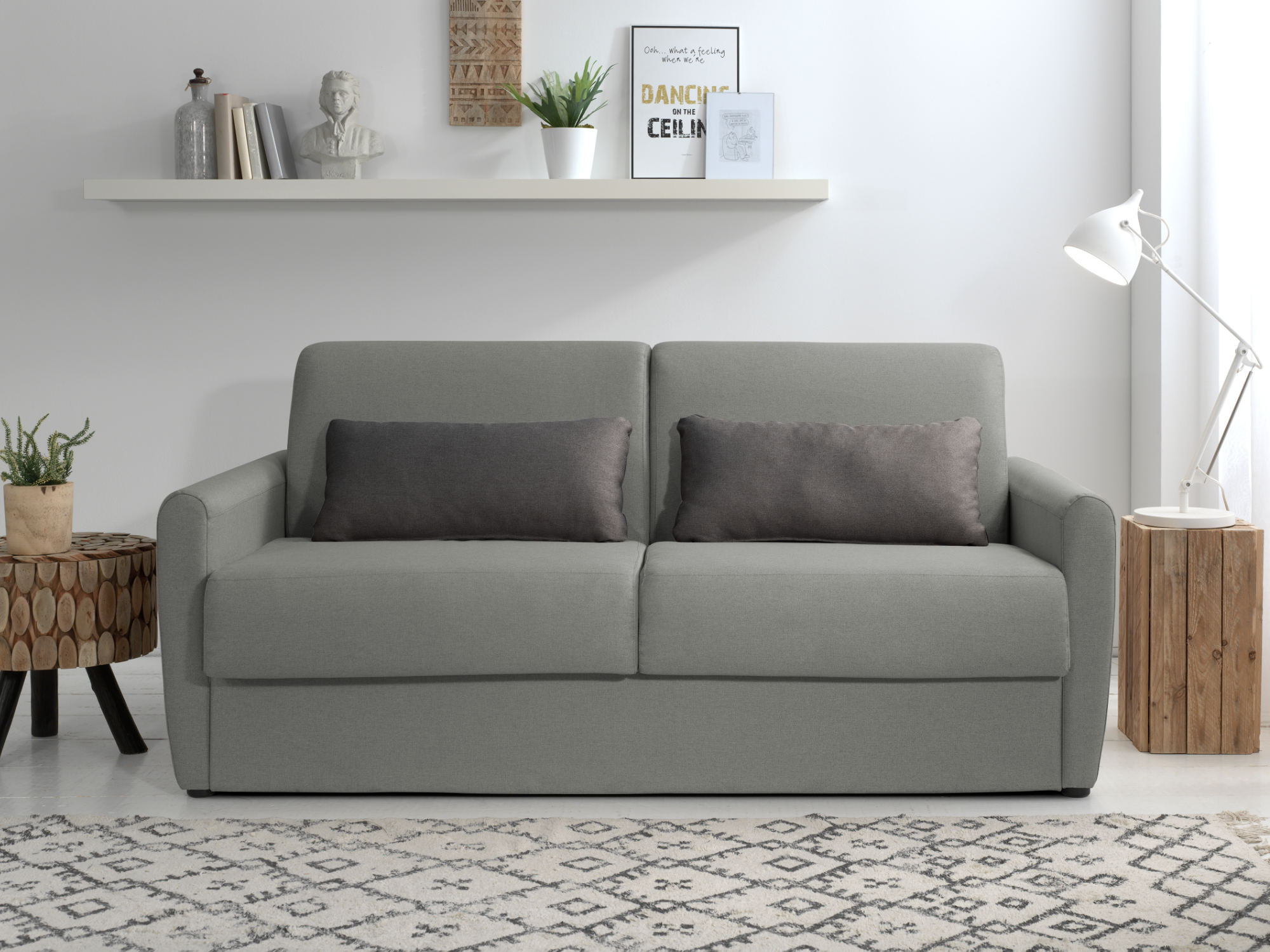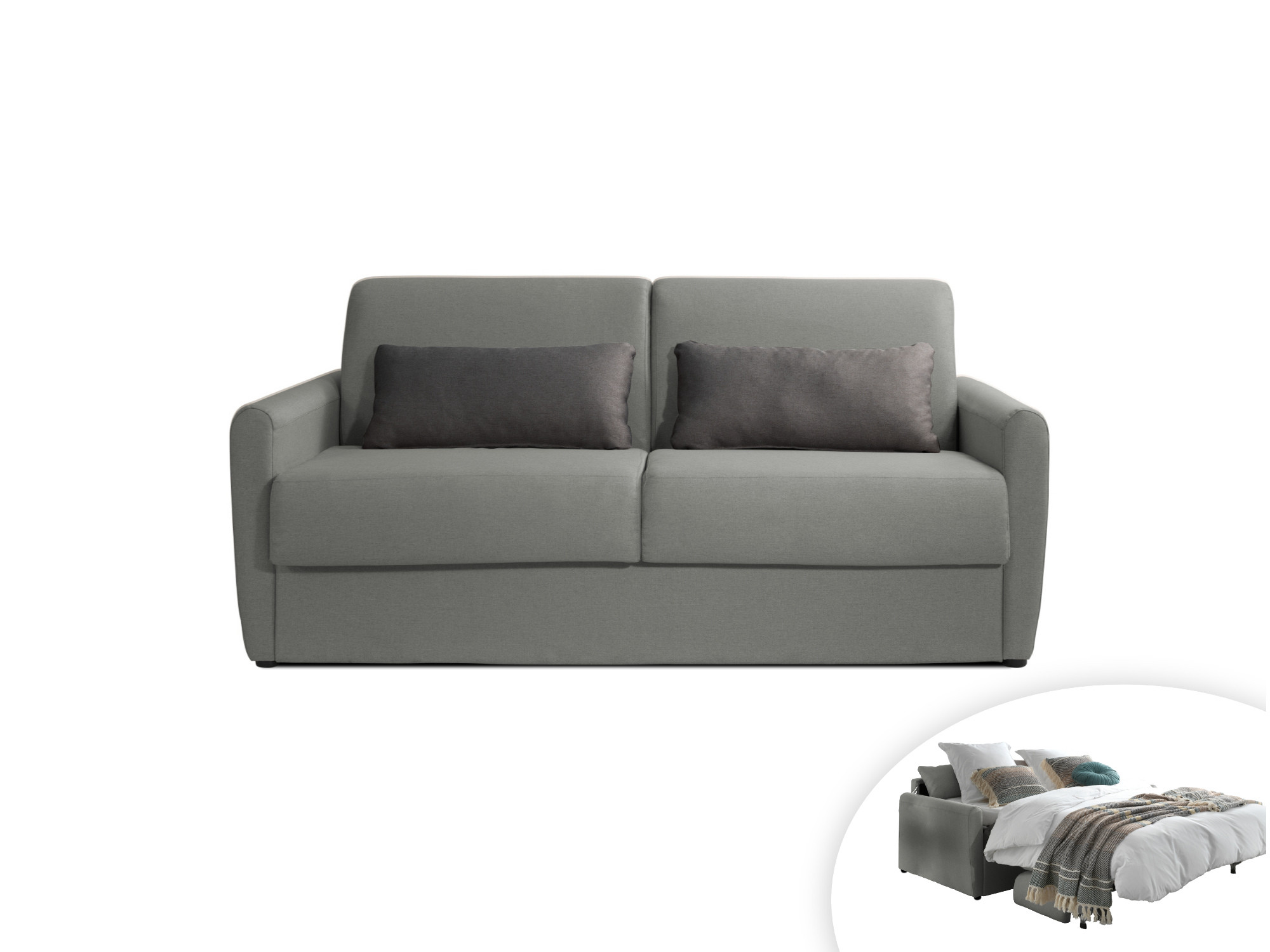 De fabrication européenne et conçu avec des matériaux faits pour durer, le canapé à ouverture express Ari a un design aux lignes épurées qui lui confère un style moderne et sobre. Il s’intégrera aisément à votre décoration d’intérieure. Disponible en gris clair ou gris foncé, il est livré avec deux coussins décoratifs contrastés.