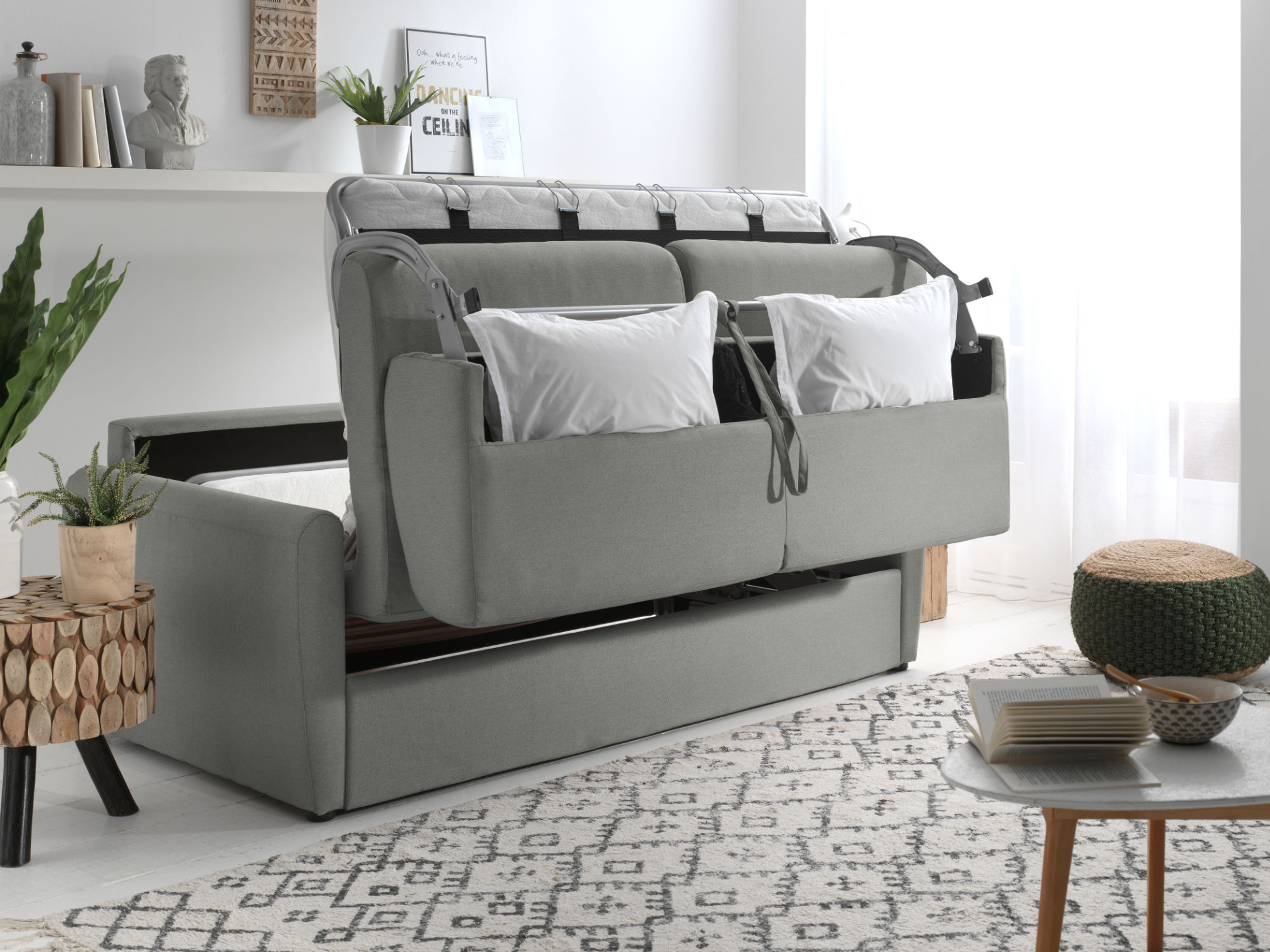 Convertible : couchage quotidien avec ouverture express et rangement incorporé
