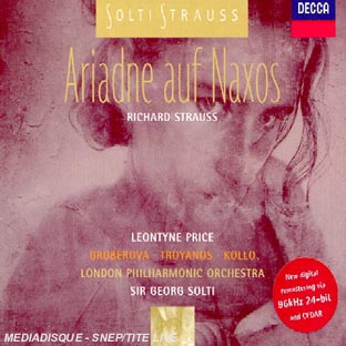 | Liste des pistes | 2.1 . es ist alles vergebens...es gibt ein reich - Richard Strauss 2.2 . die dame gibt mit trubem sinn - Richard Strauss 2.3 . grossmachtige prinzessin, wer verstunde nicht - Richard Strauss 2.4 . noch glaub ich dem einen ganz mich gehorend - Richard Strauss 2.5 . hubsch gepredigt! aber tauben ohren! - Richard Strauss 2.6 . ein schones wunder! - Richard Strauss 2.7 . circe, kannst du mich horen? - Richard Strauss 2.8 . circe, ich konnte fliehen! - Richard Strauss 2.9 . wie? kennst du mich denn? - Richard Strauss 2.10 . gibt es kein hinuber? - Richard Strauss 1.1 . mein herr haushofmeister! - Richard Strauss 1.2 . hier finder euer gnaden die mamsell zerbinetta - Richard Strauss 1.3 . eselsgesicht! sehr unverschamter frecher esel! - Richard Strauss 1.4 . hat der herr leicht ein stuckerl schreibpapier? - Richard Strauss 1.5 . ihnen allen habe ich eine plotzliche anordnung - Richard Strauss 1.6 . ich weiss nicht, wo mir der kopf steht - Richard Strauss 1.7 . ein augenblick ist wenig - Richard Strauss 1.8 . an ihre platze, meine damen und herren! - Richard Strauss 1.9 . ouverture - Richard Strauss 1.10 . schlaft sie? - Richard Strauss 1.11 . ach! wo war ich? tot? - Richard Strauss 1.12 . ein schones war : hiess theseus-ariadne - Richard Strauss |