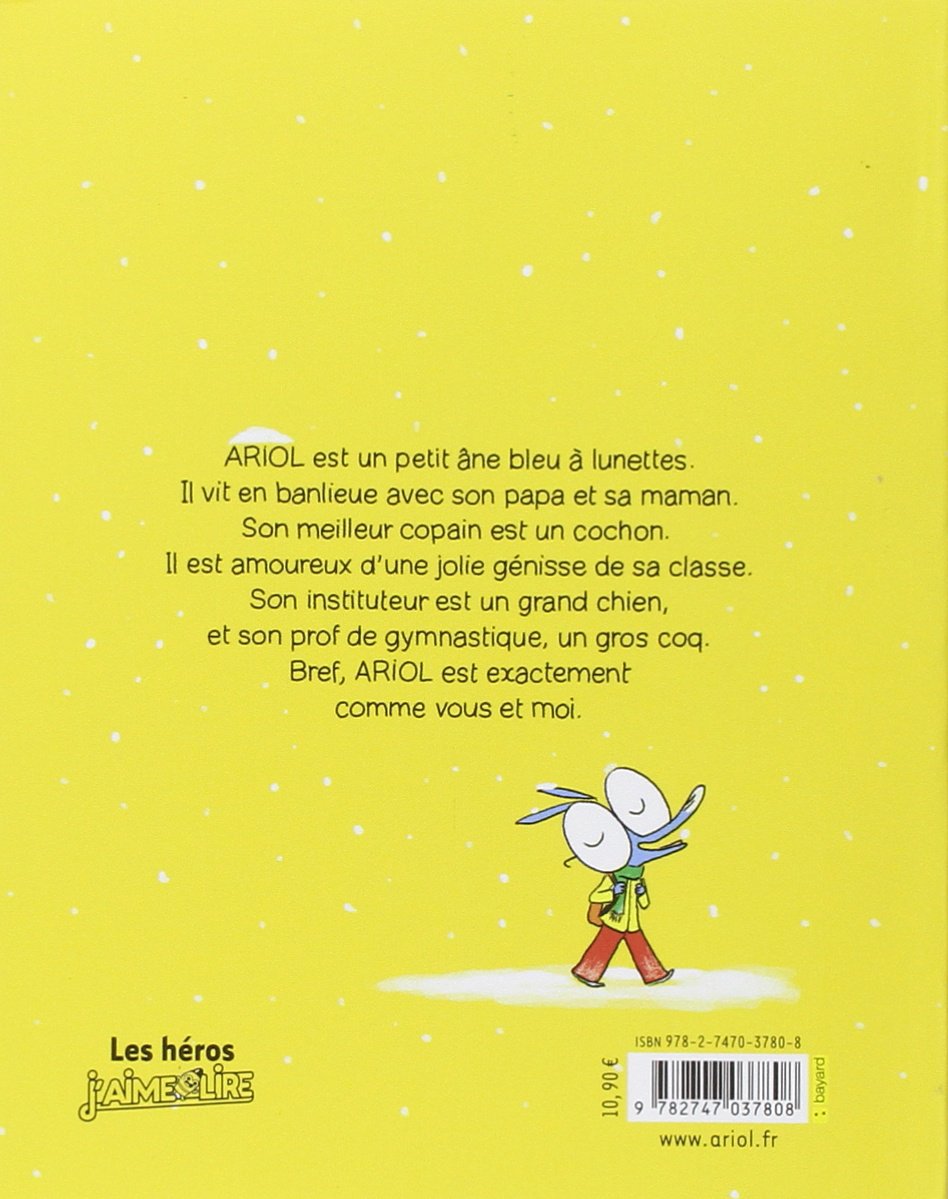Il vit en banlieue avec son papa et sa maman. Son meilleur copain est un cochon. Il est amoureux d'une jolie génisse de sa classe. Son instituteur est un grand chien, et son prof de gymnastique, un gros coq. Bref, Ariol est exactement comme vous et moi.