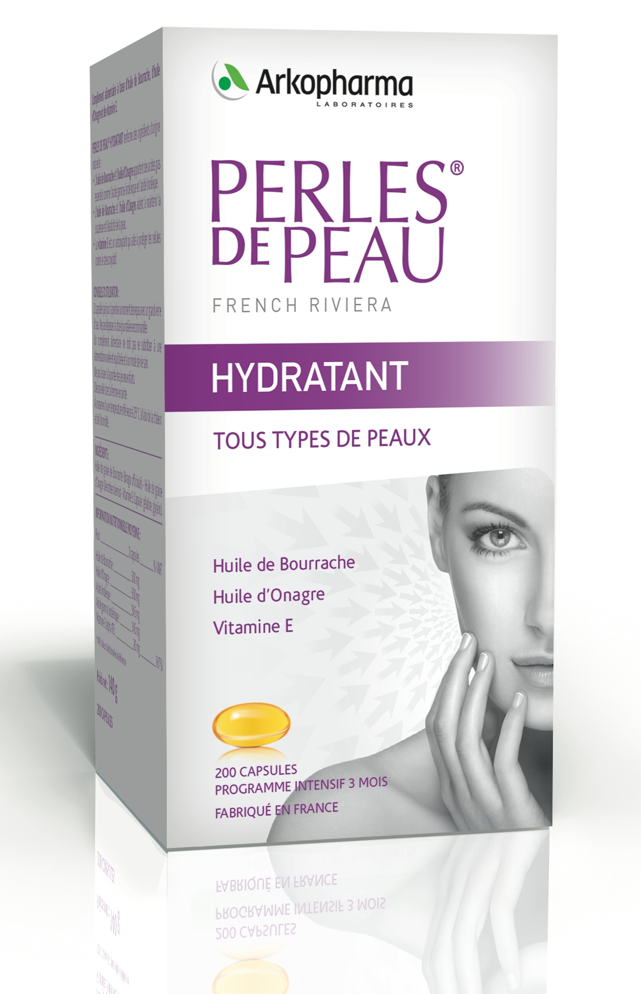 Forts de leur expertise, les laboratoires Arkopharma ont spécialement élaboré Perles de Peau® Hydratant : une formule à base d’huile de Bourrache, d’huile d’Onagre et de vitamine E rigoureusement sélectionnées par les experts du Groupe. L’huile de Bourrache est extraite des graines de Bourrache. Cette plante, originaire d’Afrique du Nord, est reconnaissable par sa structure bleue étoilée. Les propriétés de son huile sont connues et reconnues dans l’univers cosmétique. Elle permet de redonner élasticité et souplesse à la peau, notamment grâce aux acides gras qu’elle contient. L’onagre est une plante originaire d’Amérique du Nord et facilement identifiable avec ses fleurs jaunes qui s’ouvrent à la tombée de la nuit. Son huile, extraite des graines, est souvent associée à l’huile de Bourrache car elles sont complémentaires sur les bienfaits de la peau. L’huile de Bourrache et l’huile d’Onagre apportent des acides gras essentiels comme l’acide gamma-linolénique et l’acide linoléique. L’huile de Bourrache et l’huile d’Onagre aident à maintenir la souplesse et l’élasticité de la peau. La vitamine E est un antioxydant qui aide à protéger les cellules contre le stress oxydatif.
