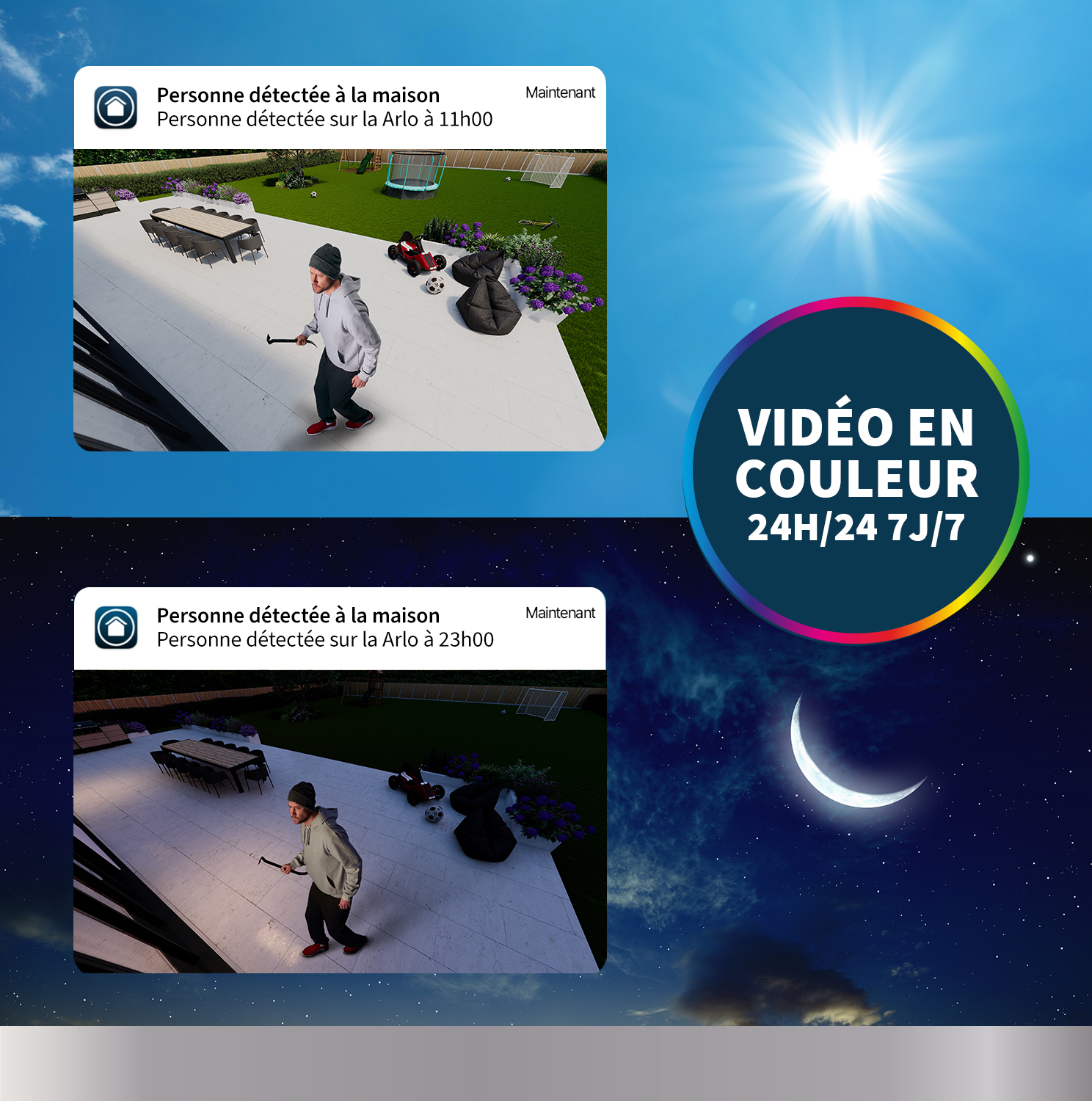 Un puissant bouclier de lumiere provenant de la premiere caméra sans fil au monde. Éclairez et filmez instantanément jusqu'a 7 metres de votre propriété avec une lumiere de 3000 lumens. La seule caméra spot intégré et 2K, zoomez jusqu'a 12x sur les détails importants et capturez des vidéos en couleur meme la nuit. Connectez-vous a votre smartphone pour des notifications instantanées lorsqu'un mouvement est détecté.