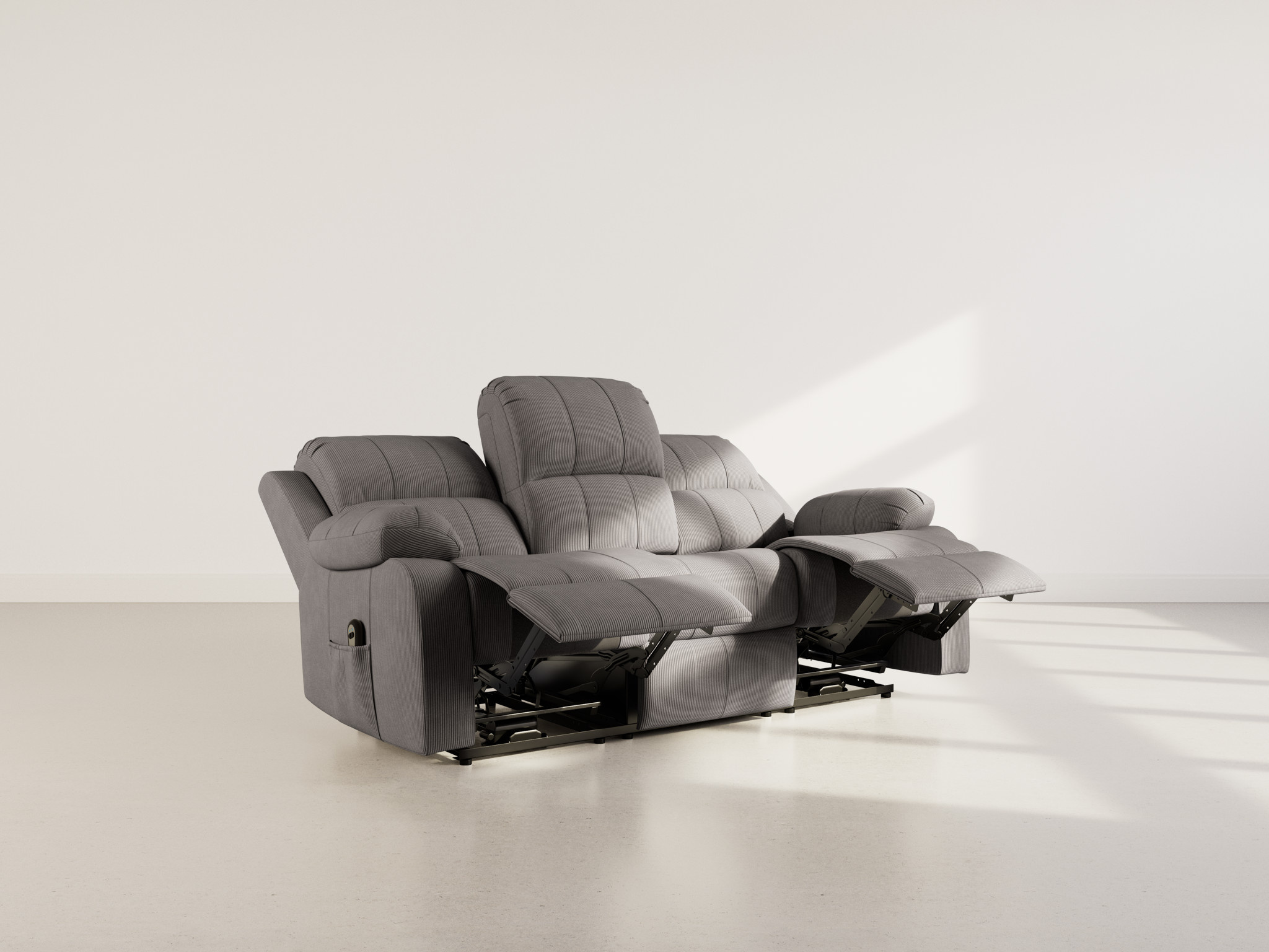 Armand - Canapé 3 places relax électrique en velours côtelé