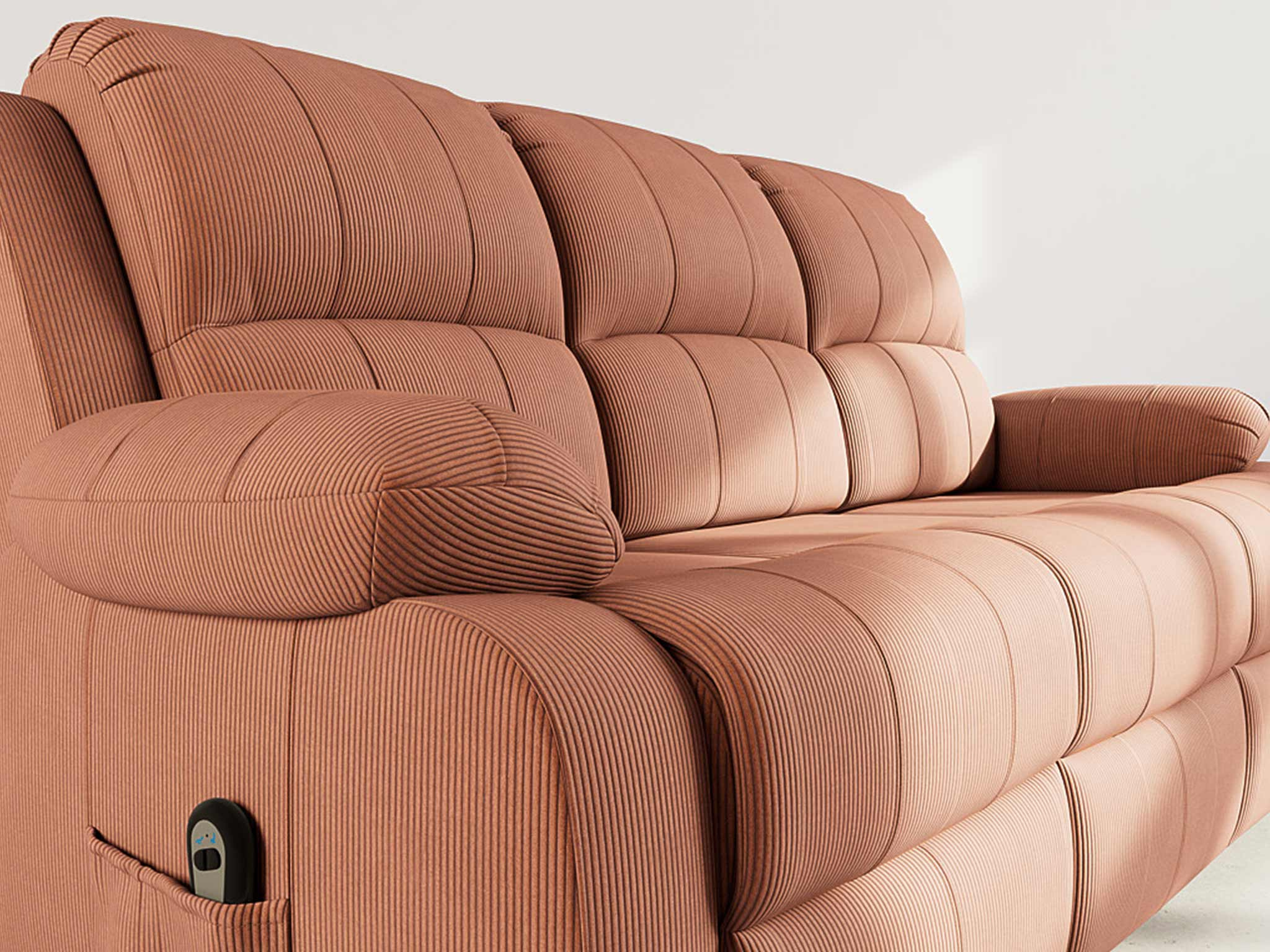 Armand 3 places vous ouvre les portes d’un univers de confort pensé pour durer, avec cette version en velours côtelé ultra doux, au style rétro chic. Parfait pour les moments de détente en solo, en duo ou en famille, il intègre deux places relax électriques qui permettent d’ajuster indépendamment le dossier et le repose-pieds des assises latérales. Un simple geste suffit pour trouver la position idéale, que ce soit pour lire, vous reposer ou simplement profiter de l’instant.