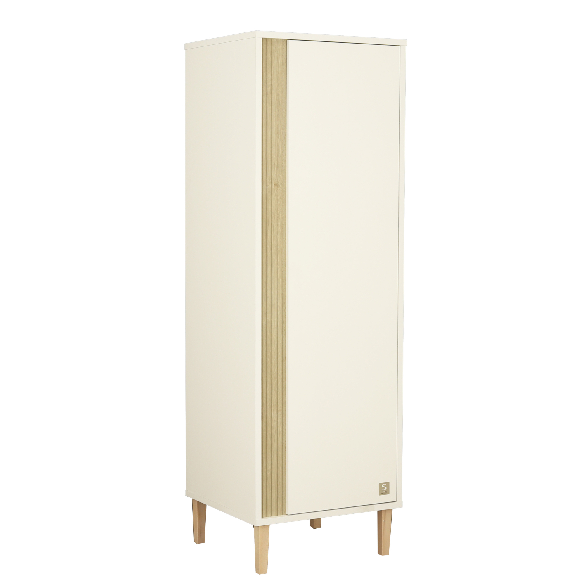 Armoire 1 porte détail imitation bois texturé et pieds bois