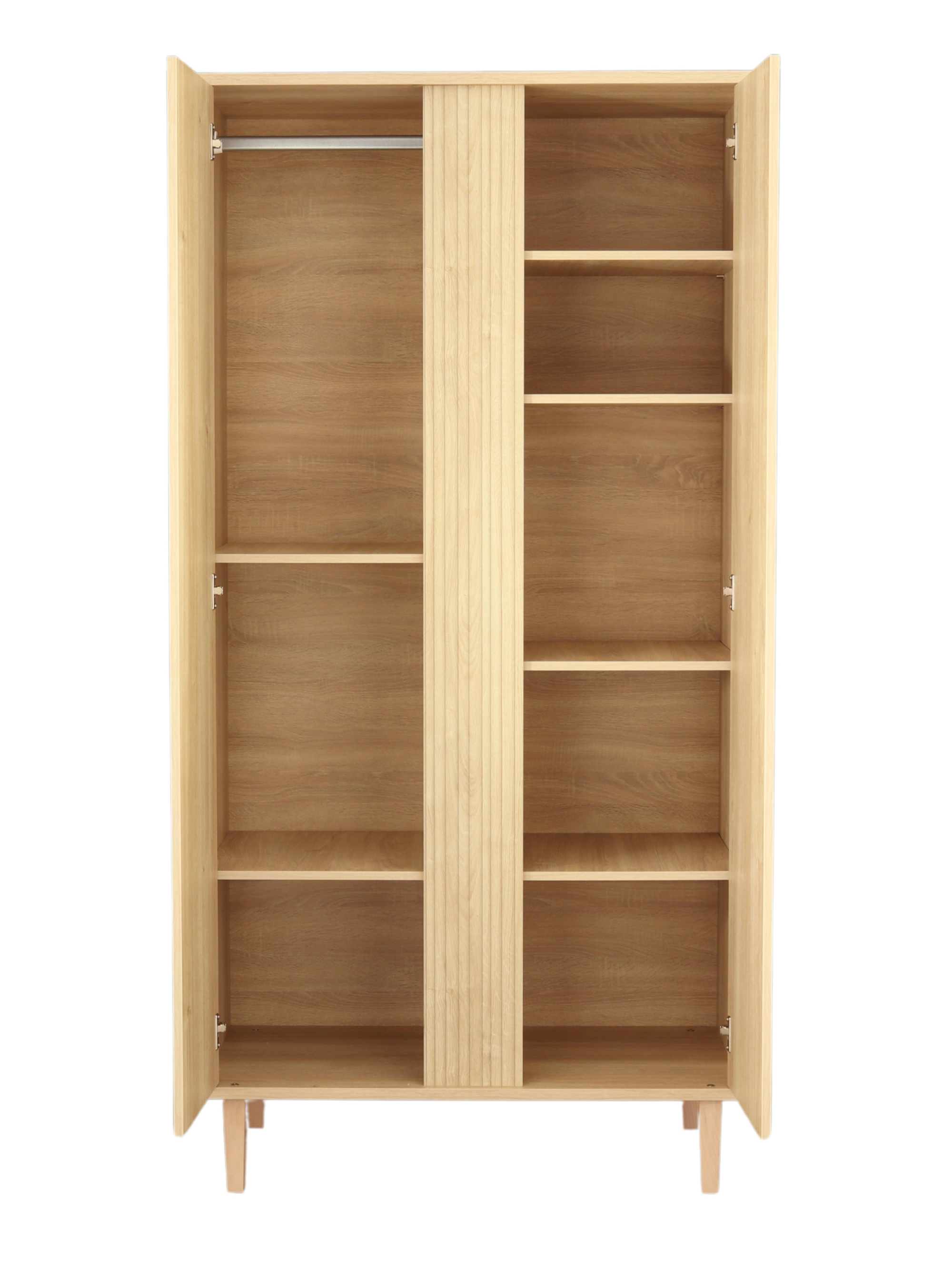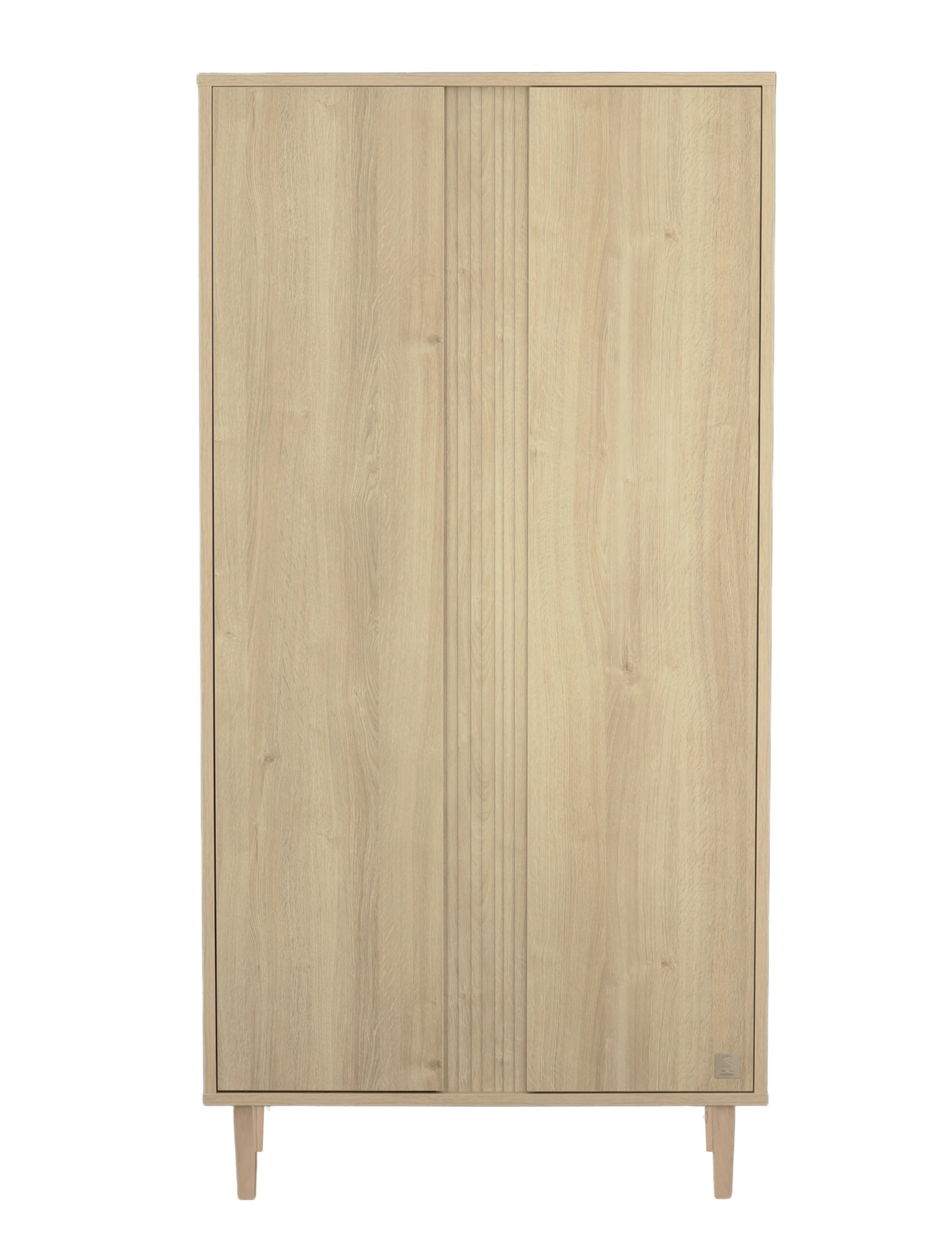 Armoire 2 portes avec détail imitation bois texturé et pieds bois
