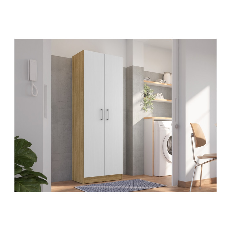 Armoire Multifonctions 2 Portes Largeur 61 cm H 170.6 Coloris Imitation Chêne et Blanc Ecru