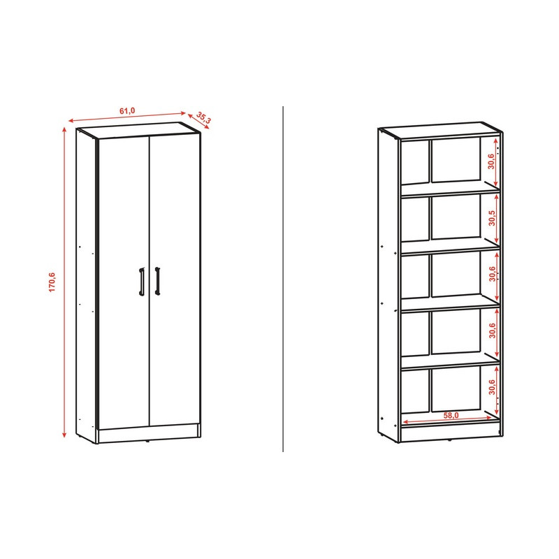 | Libellé | Armoire 2 Portes Chêne et Blanc 5 Niches L 61 H 170.6 P 35.3 cm |