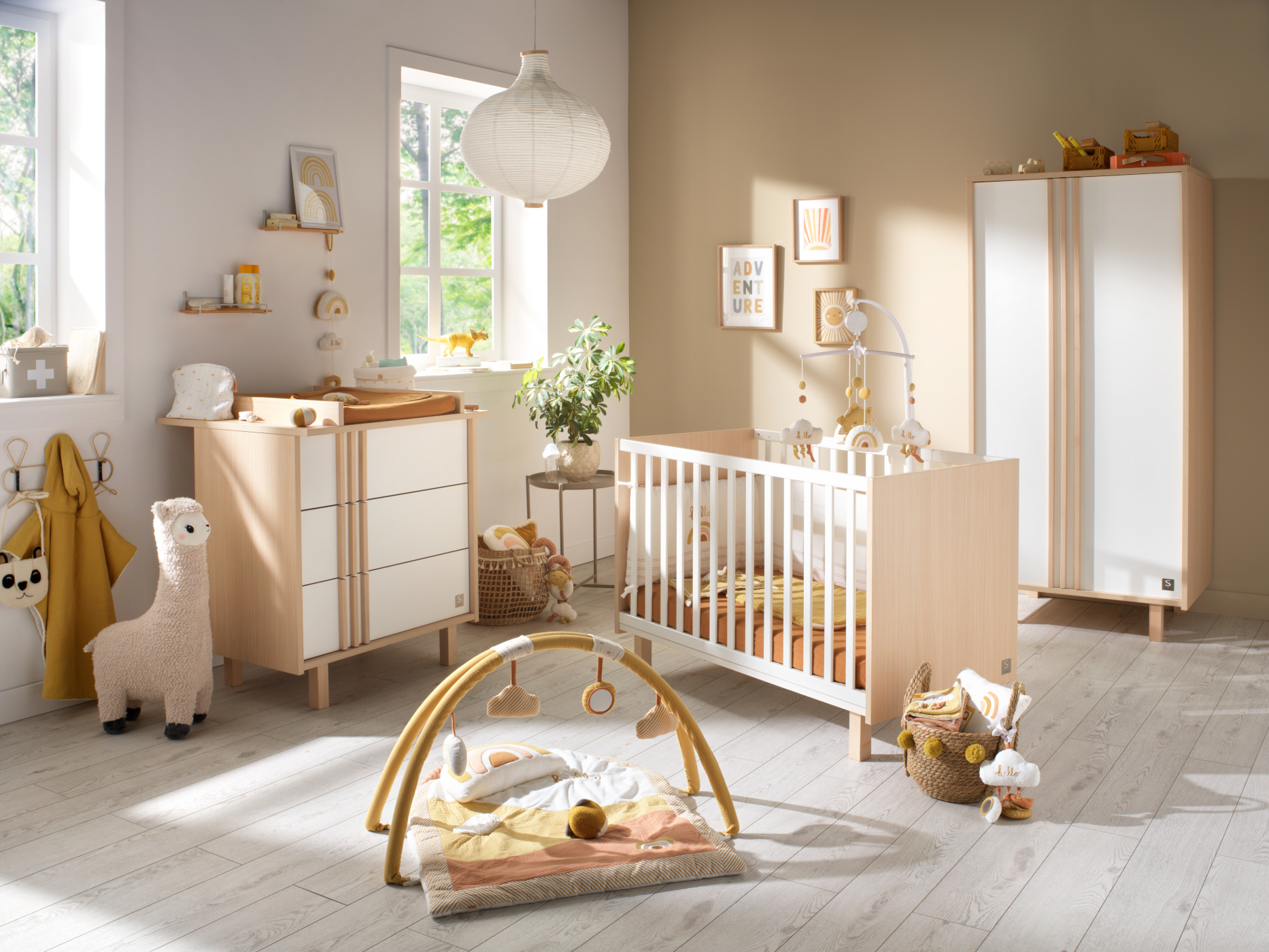 Craquez pour l'armoire de la collection Nature. Un espace de rangement fonctionnel qui complètera avec harmonie la chambre de votre bébé. Les longues et élégantes poignées toutes douces en bois appliquées sur les façages de l'armoire apportent classe et caractère à cette chambre ultra moderne.