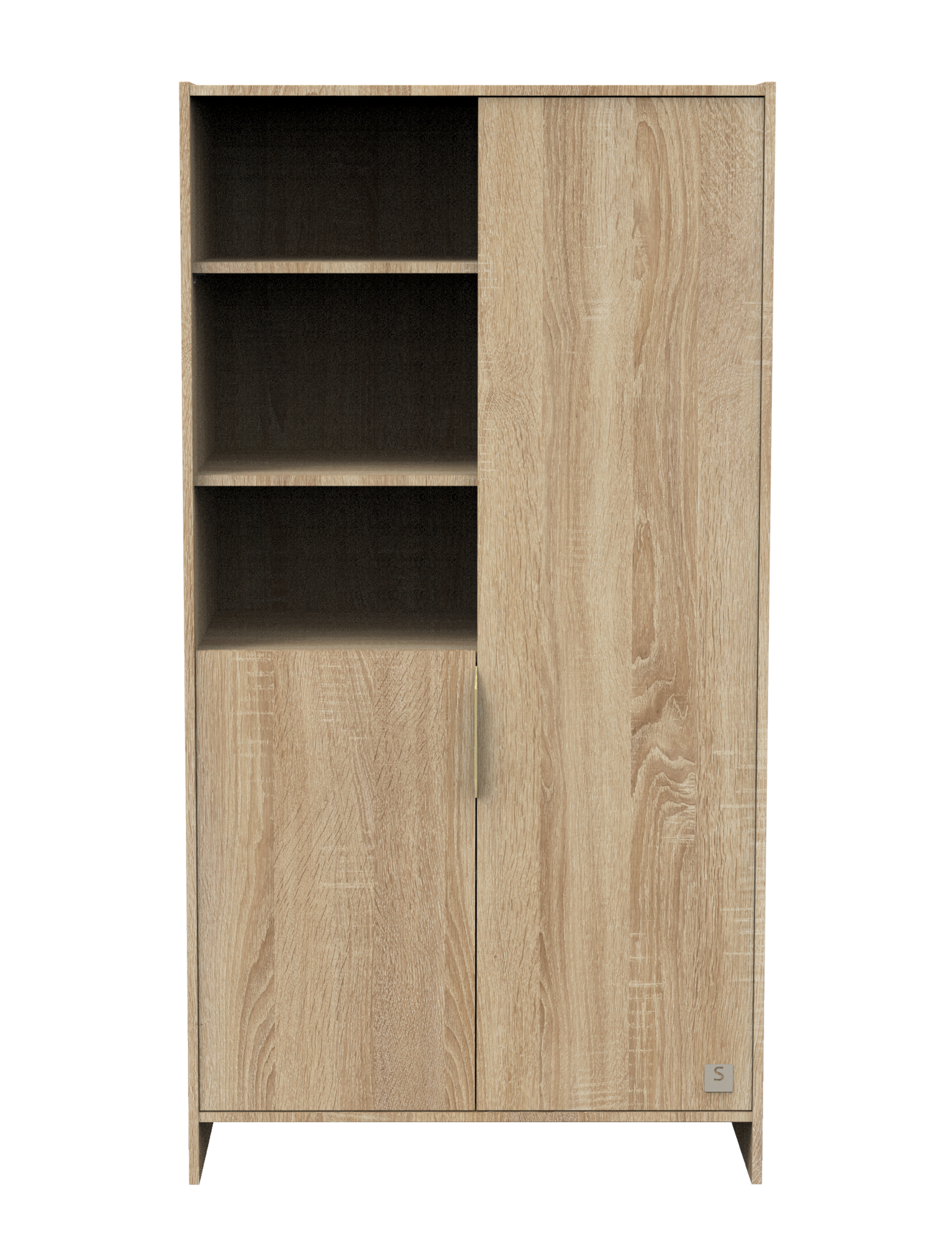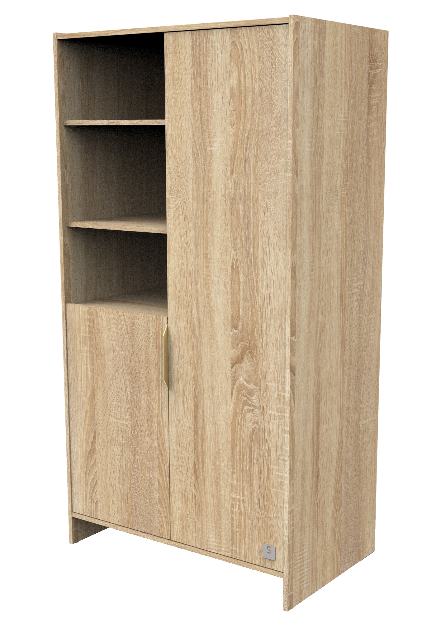 | Libellé | Armoire 2 portes et 3 niches avec poignées dorées décor chêne doré |