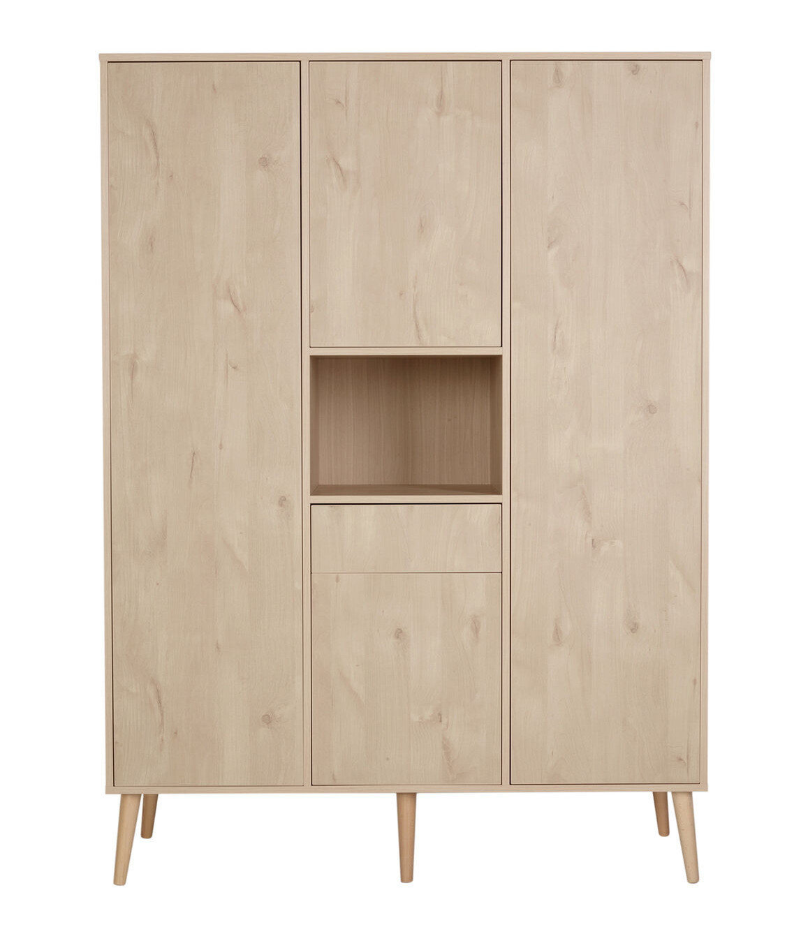 Libellé Armoire 4 portes 1 niche bois chêne clair et pieds hêtre massif Cosy