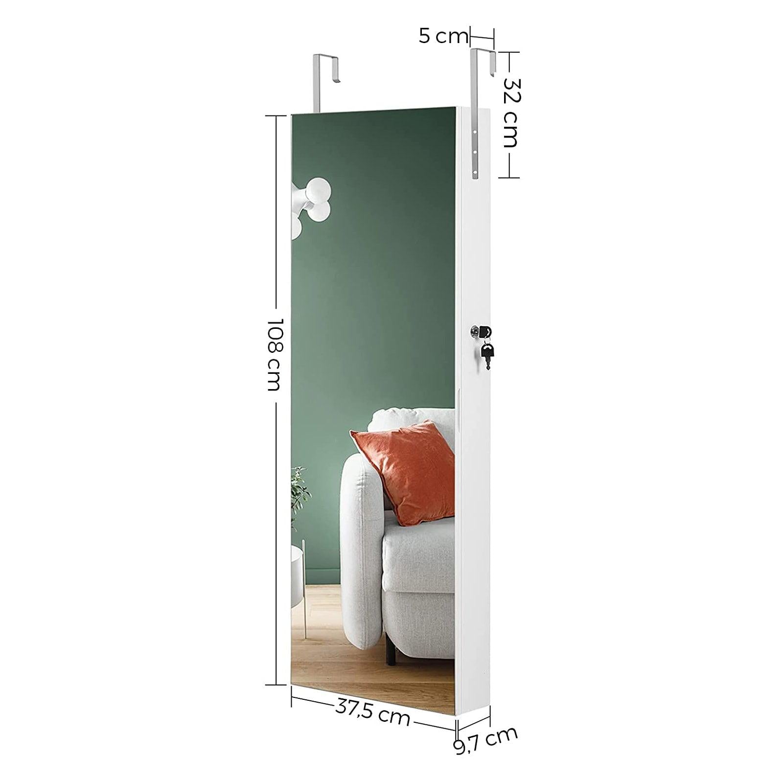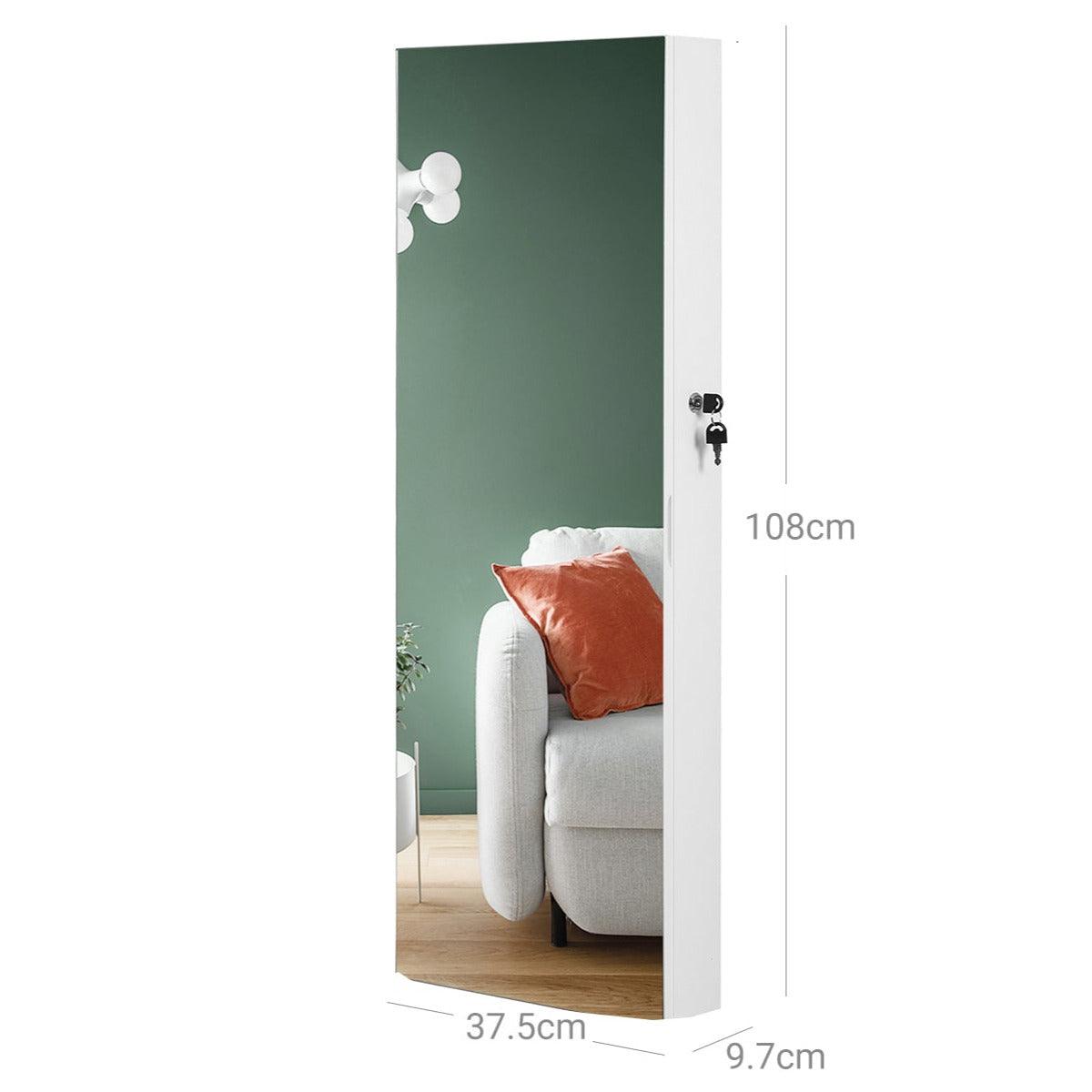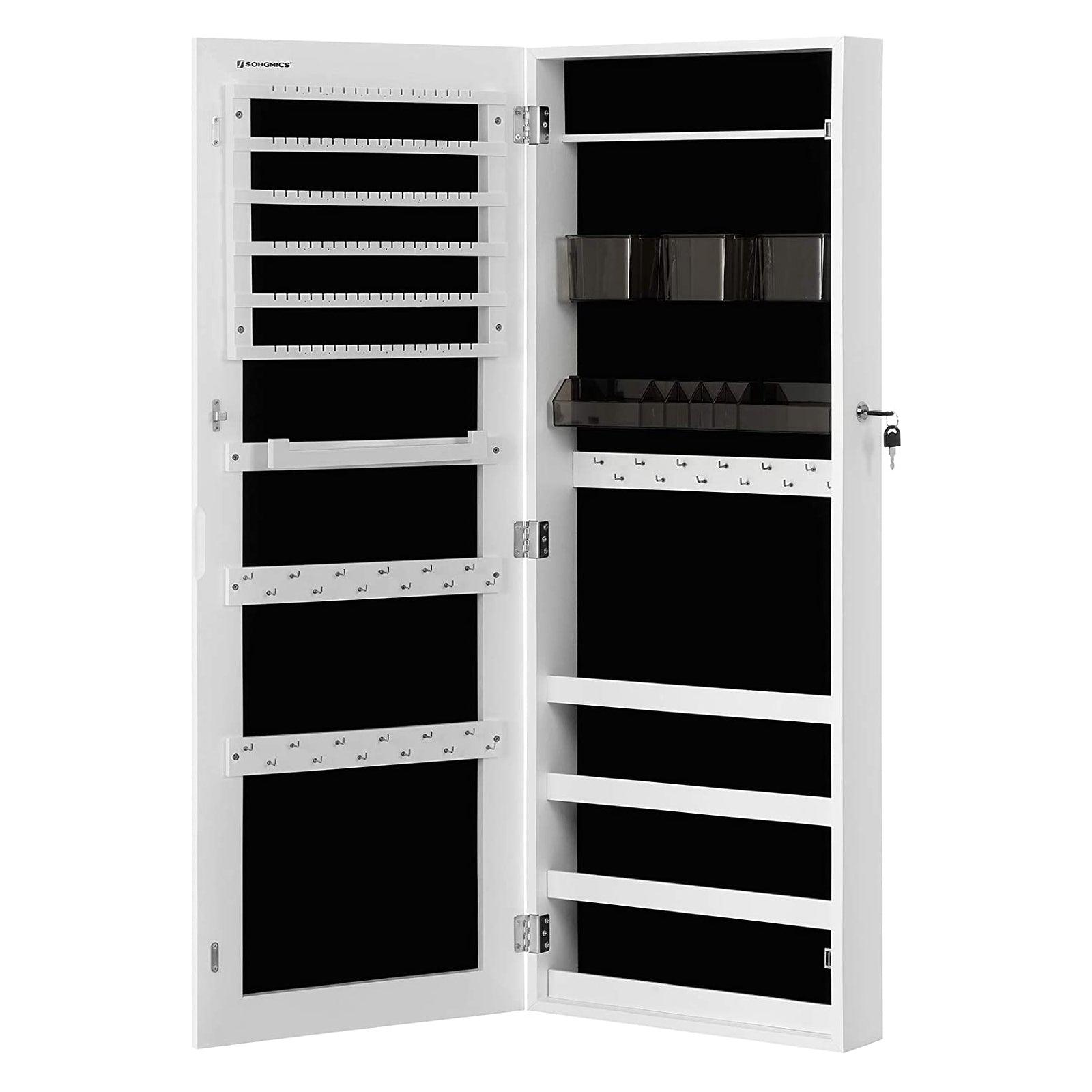 Libellé Armoire à bijoux murale range-bijoux avec 2 organisateurs cosmétiques à suspendre miroir psyché sans cadre avec serrure et clés 108 cm blanc 12_00023