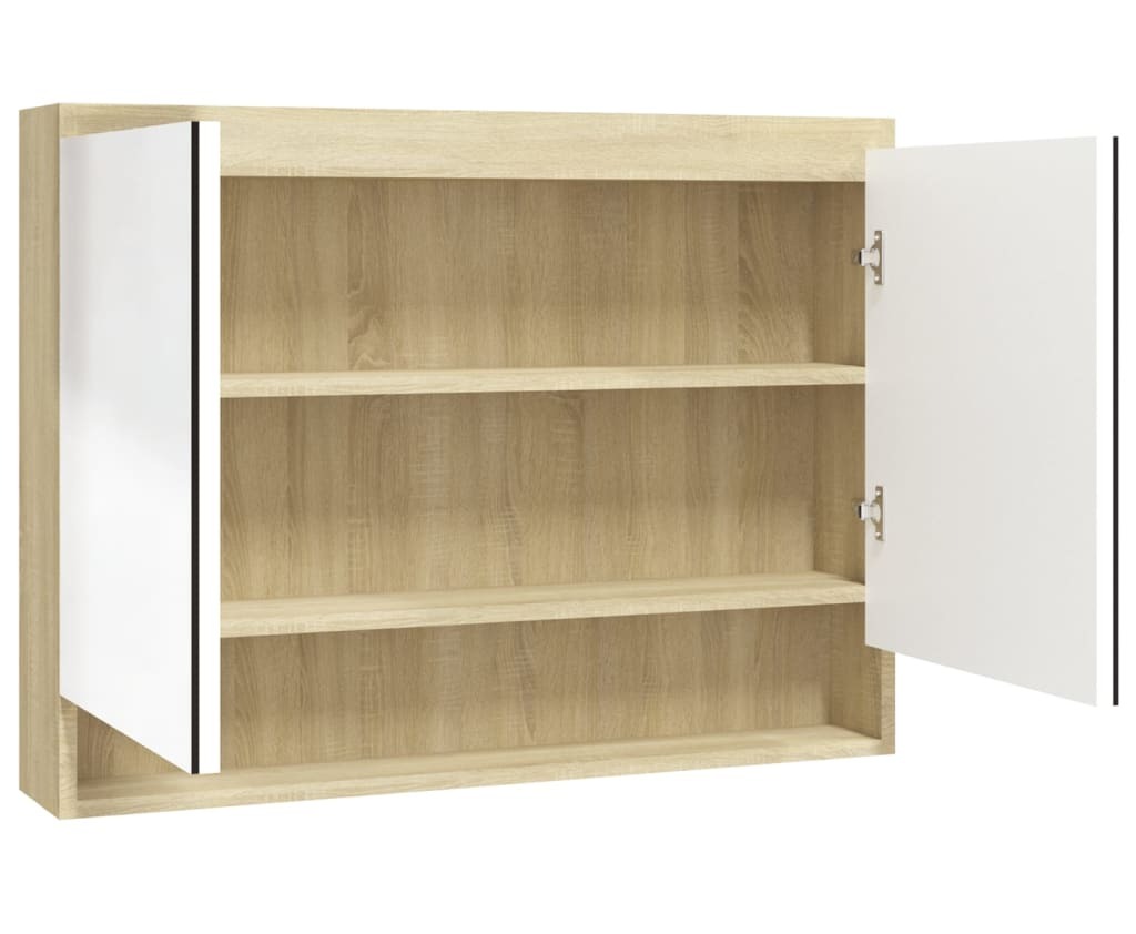 Libellé Armoire à miroir de salle de bain 80x15x60 MDF Blanc et chêne