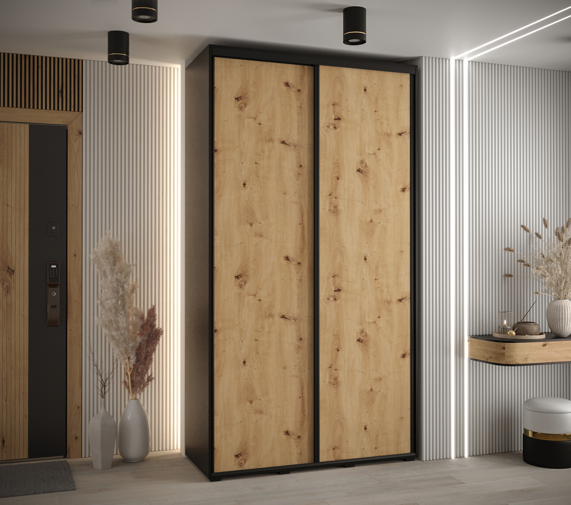 Armoire à portes coulissantes davos 1 235.2 x 140 x 60 2 portes coulissante (noir/chêne artisan/noir)