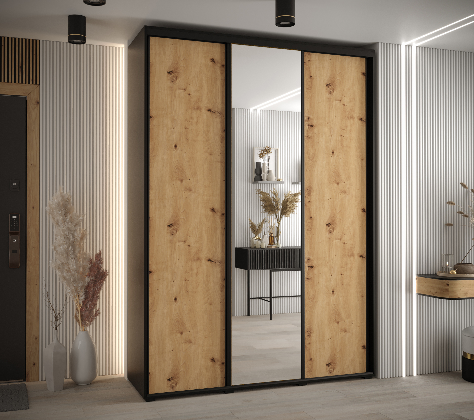 Armoire à portes coulissantes davos 3 235.2 x 170 x 60 3 portes coulissante (noir/chêne artisan/noir)